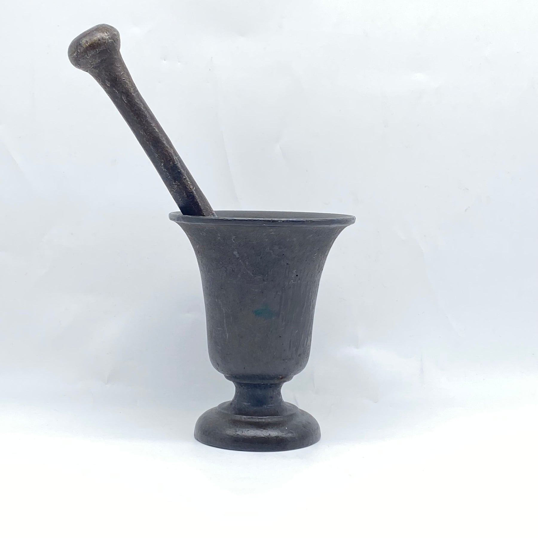 Upptäck historiens charm med denna klassiska mortel med stöt i järn - en tidlös tillägg till ditt kök.