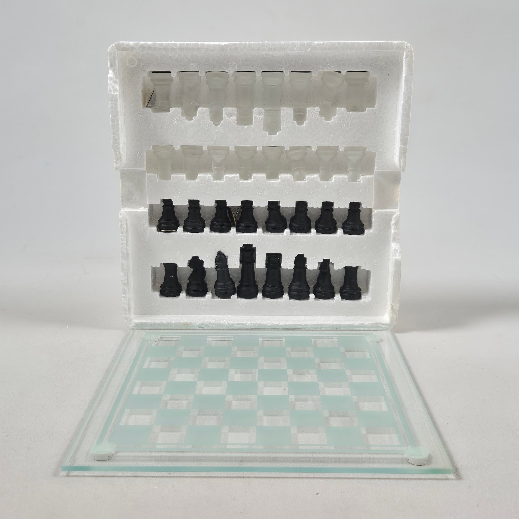 Elegant och Unikt Glasschackspel i Mycket Gott Skick