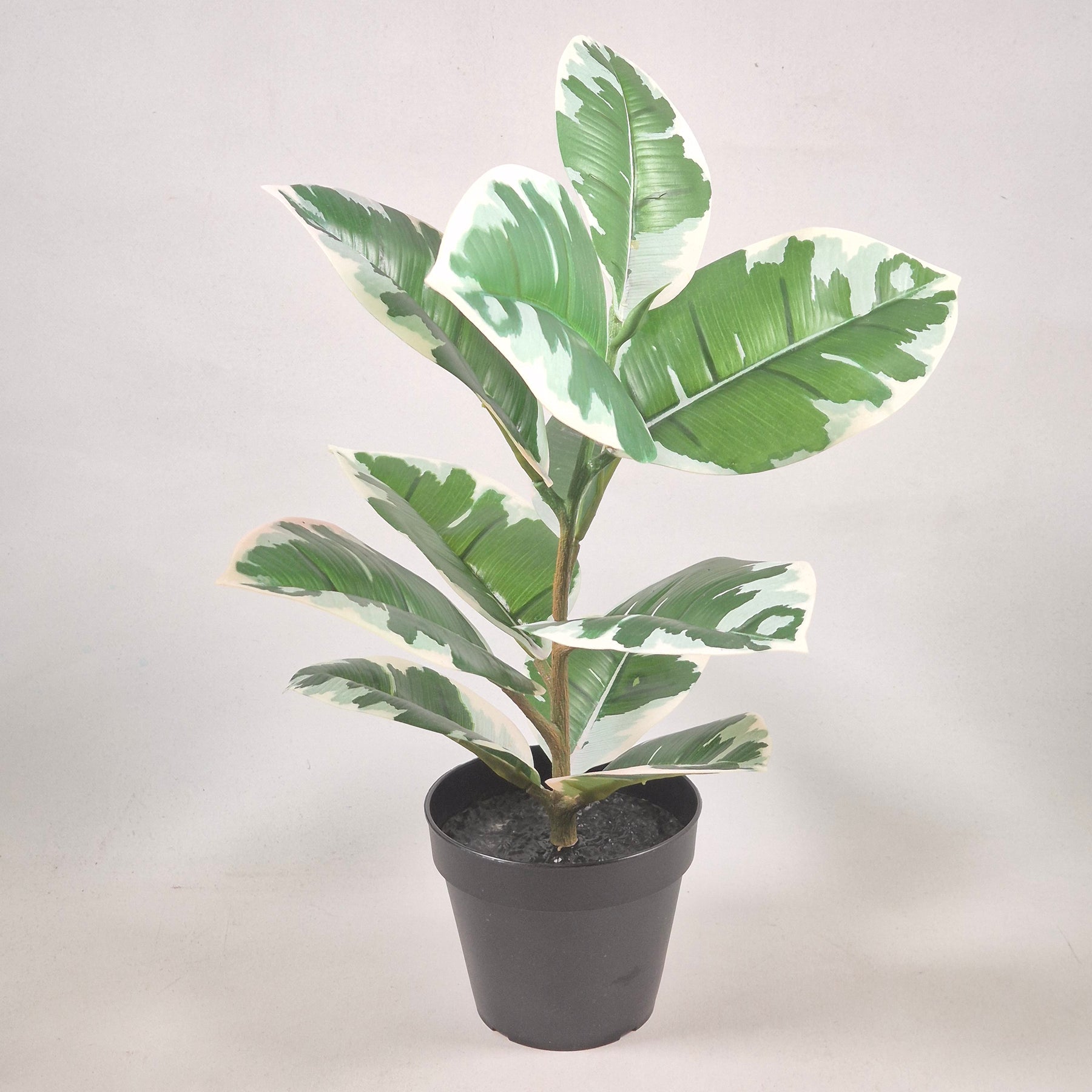 Denna snygga krukväxt i konstmaterial är en perfekt replika av en ornamental Ficus. Designen är detaljrik och naturtrogen, vilket ger en fräsch och livlig känsla till alla rum. Krukan är tillverkad av återvunnen plast, vilket gör det till ett miljömedvetet val för den stilmedvetne. Skicket är utmärkt och plantan kräver minimalt underhåll.