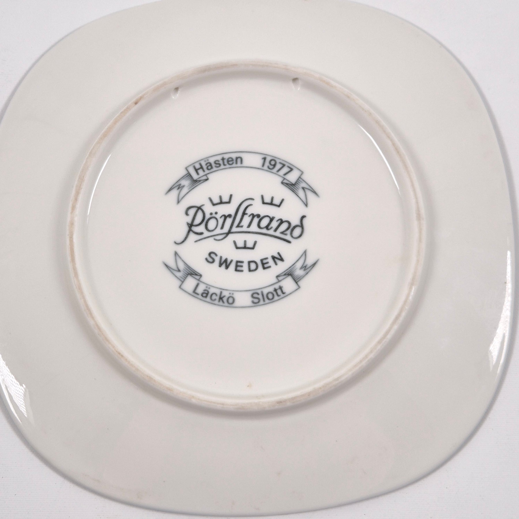Denna charmiga keramiktallrik från Rörstrand är smyckad med en vacker scen av en vit häst och ett sagolikt slott, vilket framhäver dess retro charm och konstnärliga finess. Tallriken, som är från serien "Hästen 1977" särskiljer sig med sin detaljrika och livfulla illustration, skapad för slottet Läckö. Den är inte bara ett utmärkt samlarobjekt utan även ett elegant inslag i varje heminredning. Tallriken är begagnad men är i mycket gott skick, utan synliga skador.Produktspecifikationer