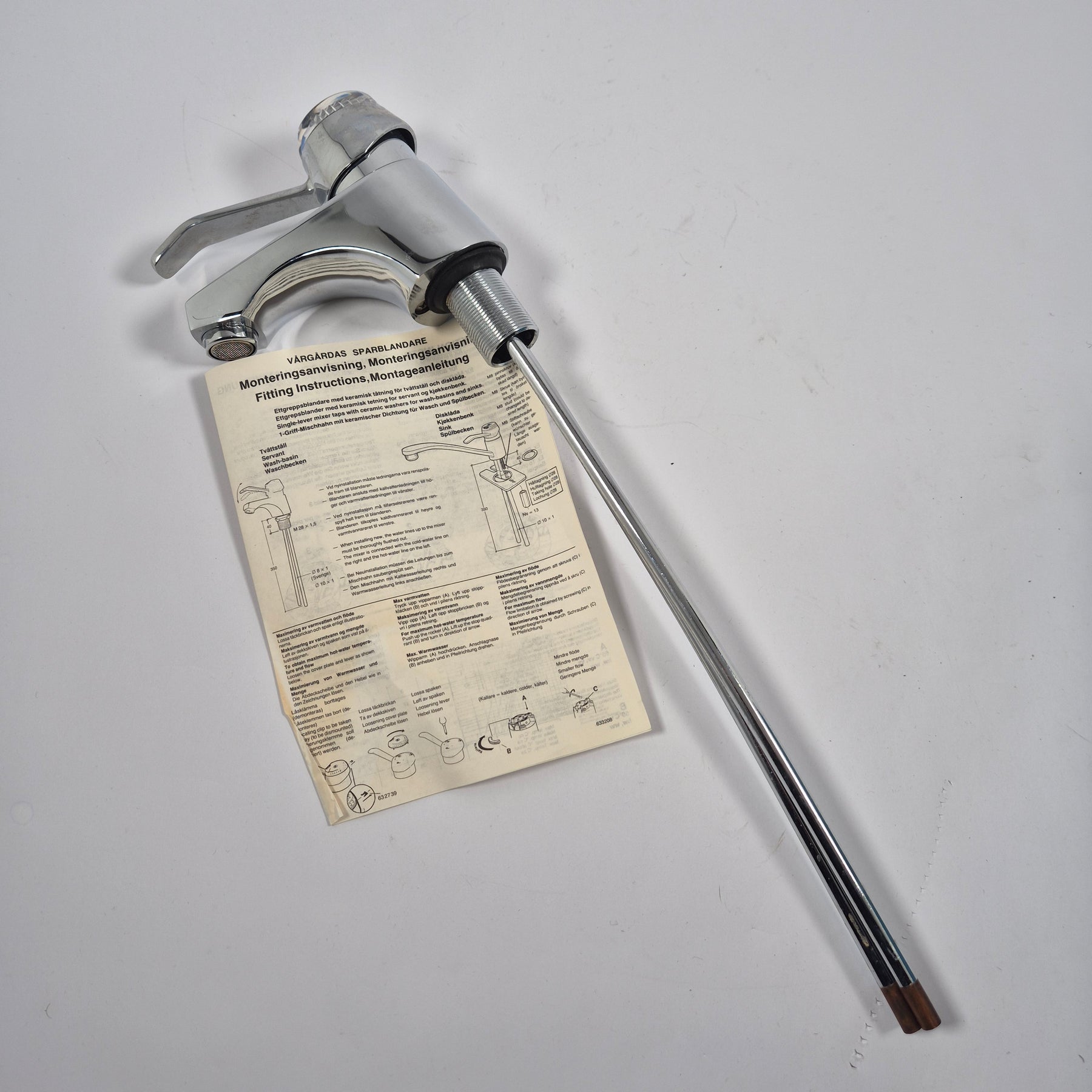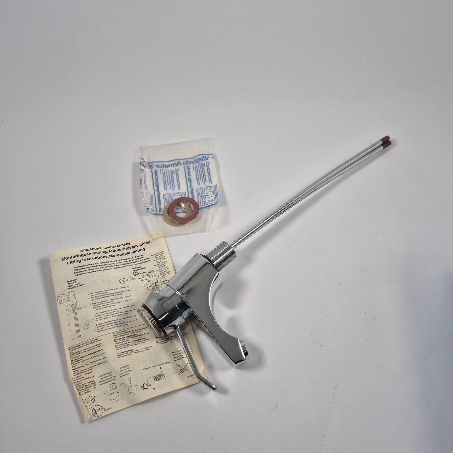 Detta är en klassisk Vårgårda ettgrepps-spakblandare med tydlig markering för varmt och kallt vatten. Blandaren levereras med original monteringsanvisning, lång anslutningsstång och genomföring för enkel installation. Stilren kromad yta och dekorativ ovansida gör den lika fin i sommarstugan som i det retroinredda hemmet. Begagnad men i mycket gott skick med bara mindre spår av användning.3. Produktspecifikationer