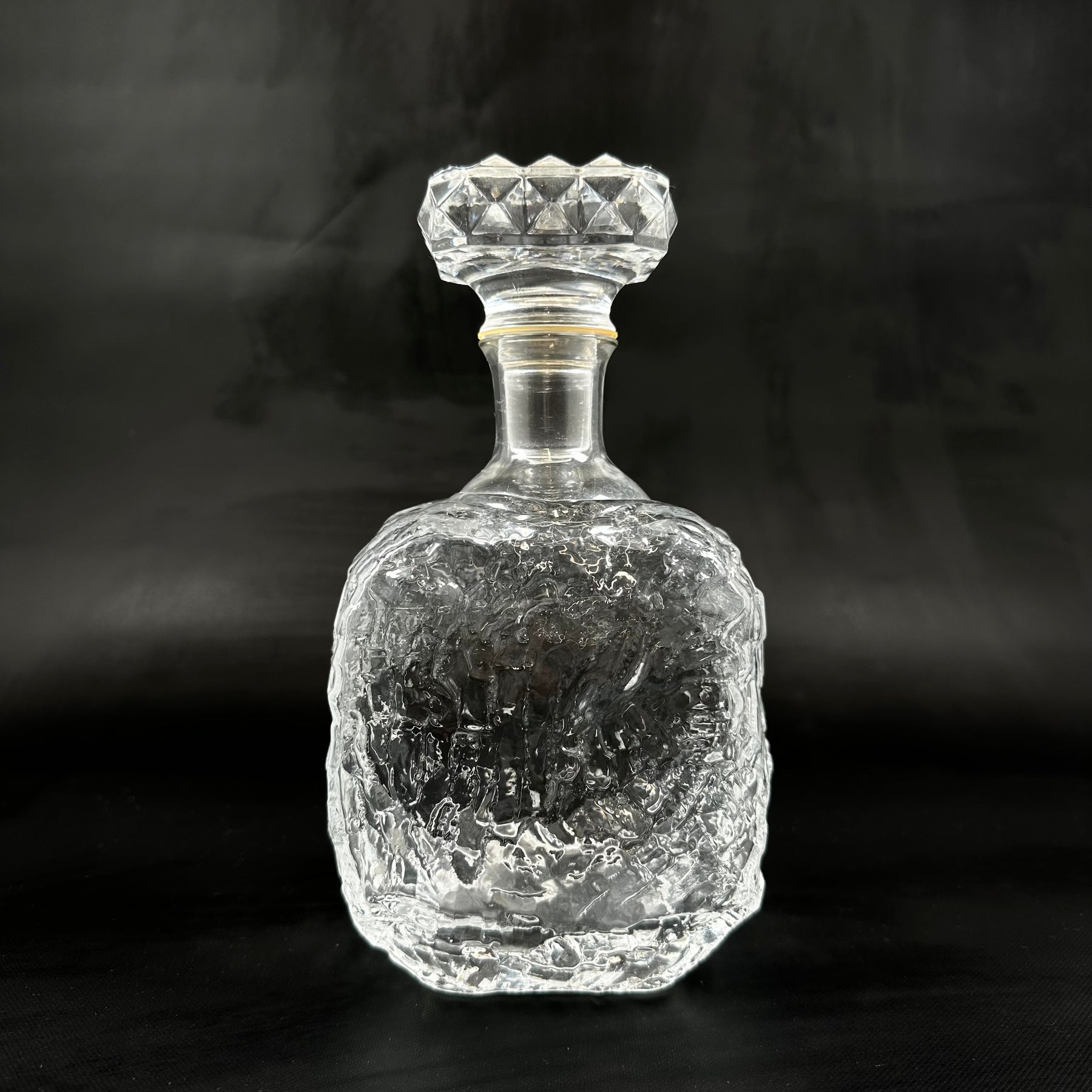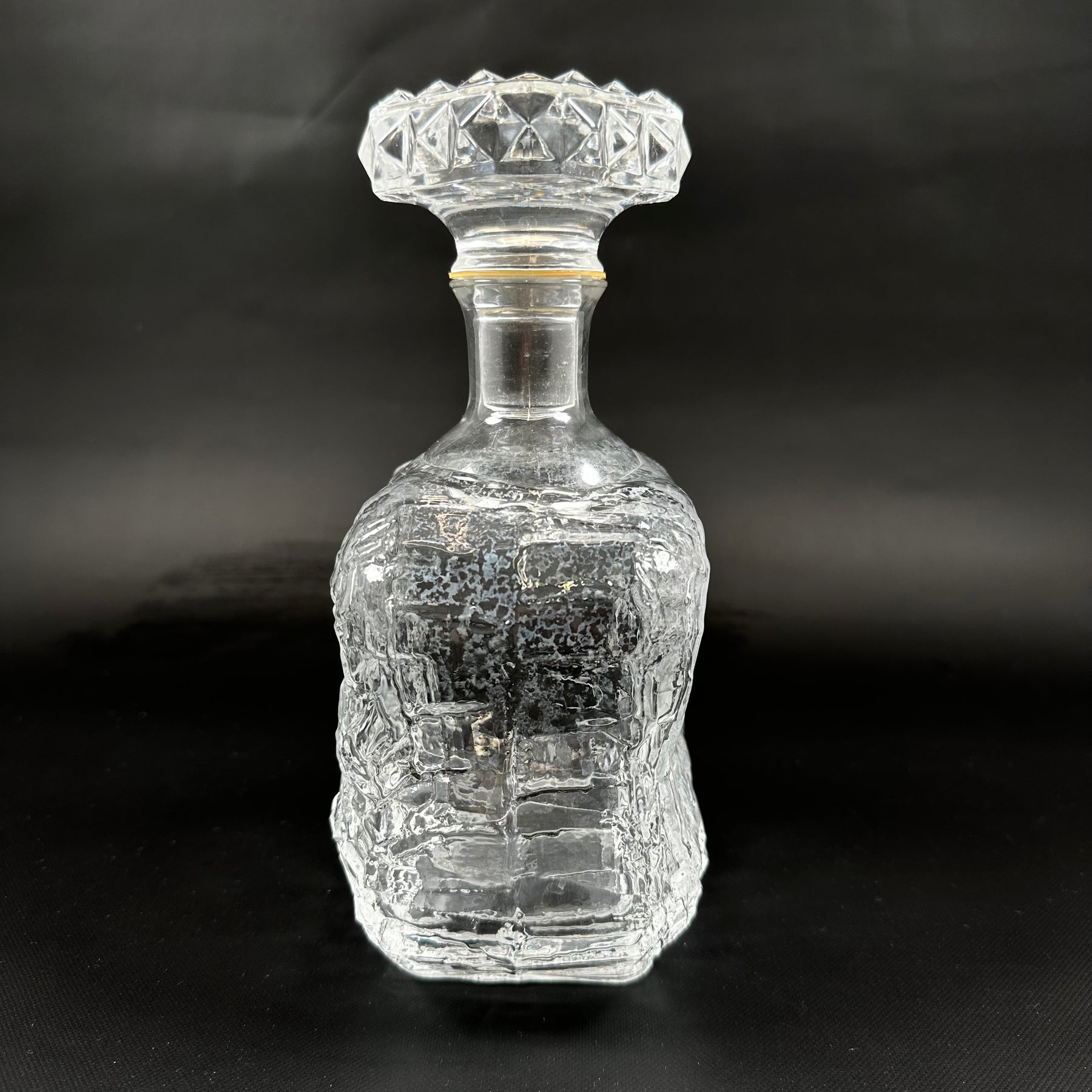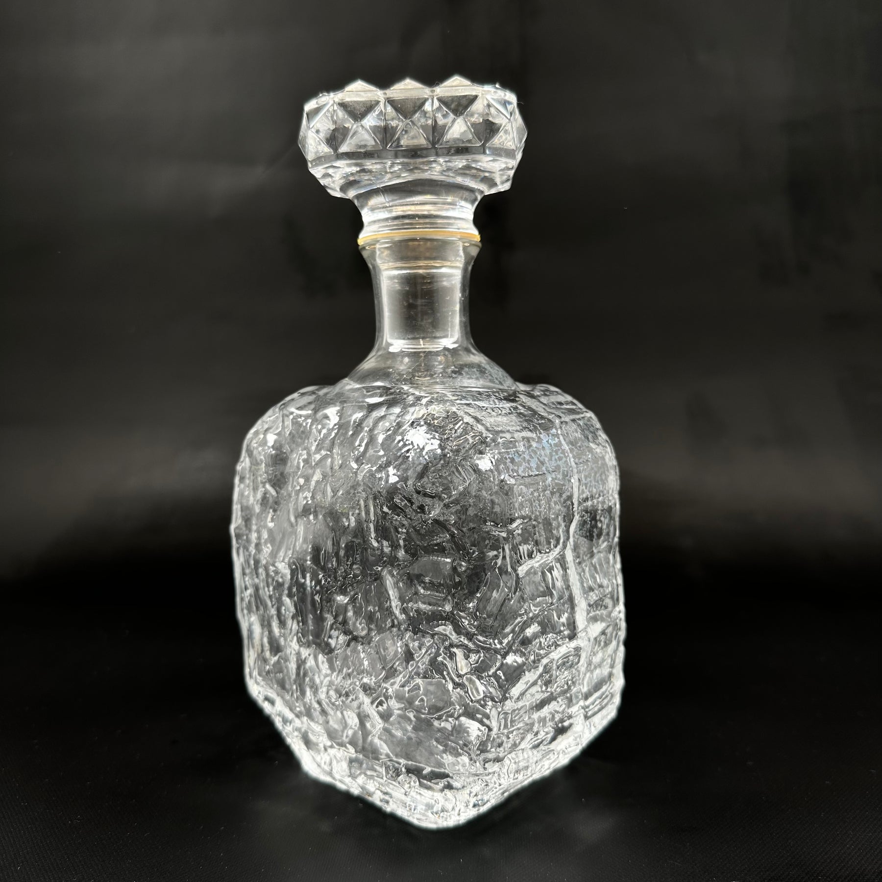 Denna karaff är skuren i kristall med komplexa mönster som fångar och reflekterar ljuset på ett spektakulärt sätt. Perfekt för att servera och bevara dina finaste drycker, samt som en elegant detalj på middagsbordet eller i barskåpet. Karaffen är begagnad men har bevarats i utmärkt skick och visar minimala tecken på användning.Produktspecifikationer