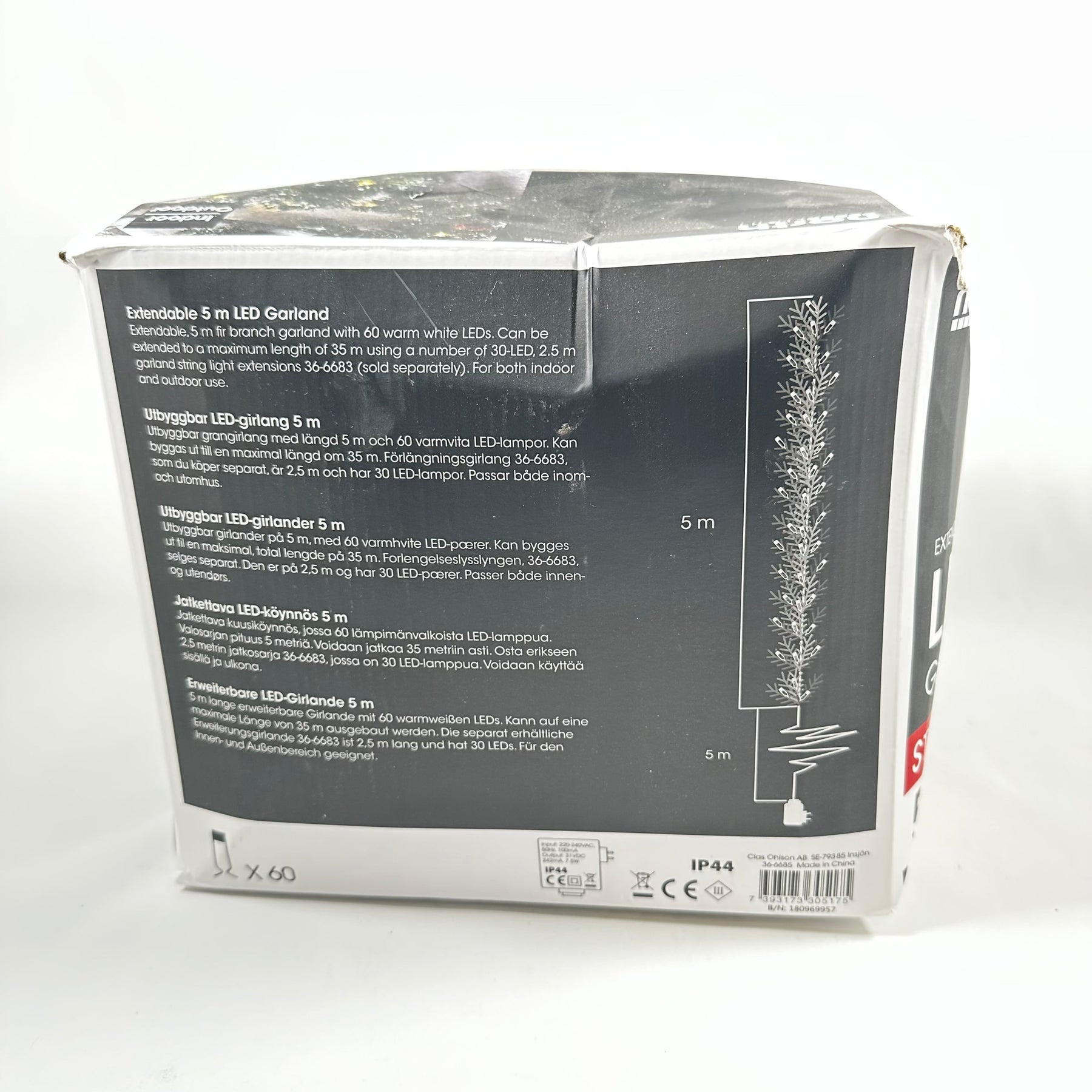 Denna LED-girland från North Light är en startutrustning på 5 meter med 60 varmvita LED-ljus, perfekt för att lyfta juldekorationerna både inomhus och utomhus. Paketet innehåller allt du behöver för att enkelt installera och börja njuta av en vacker ljussättning direkt. Girlanden är utbyggbar och kan förlängas upp till 35 meter för större utrymmen. Produkten är ny och aldrig använd, redo att lysa upp din hemmiljö.