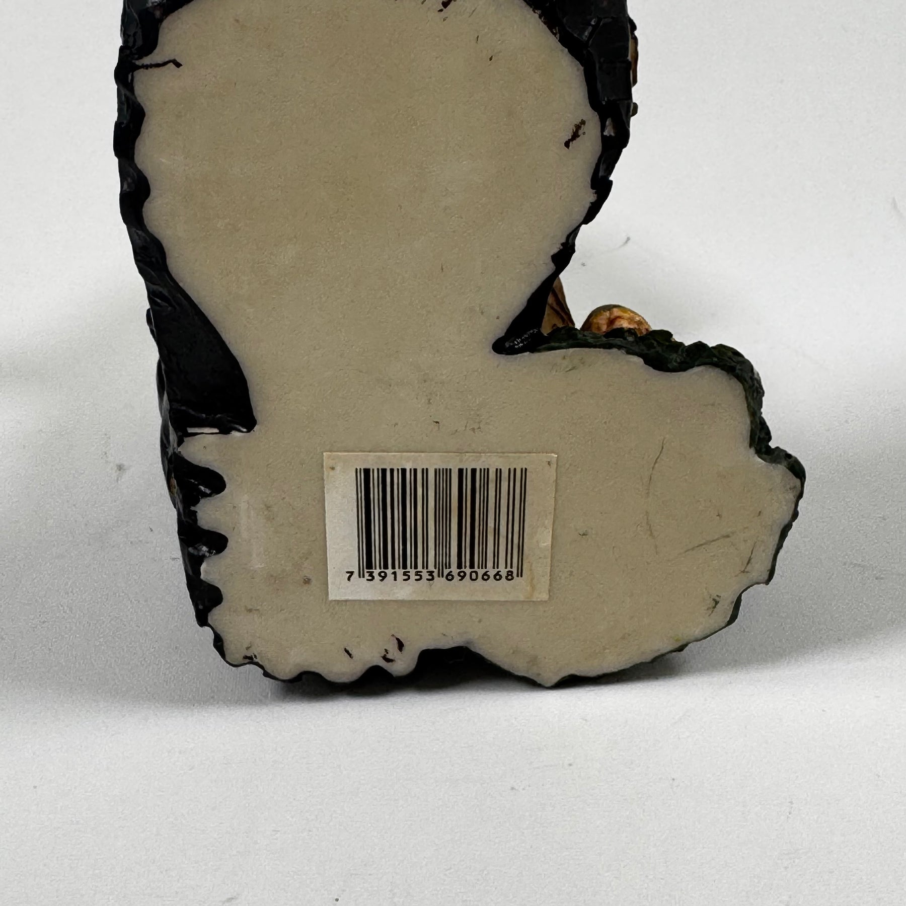 Detta är en fantasifull dekorationsfigur som föreställer ett hus formad som en stövel, bebott av små glada gnomer. Tillverkad med en imponerande detaljrikedom och färgsättning som kommer att fånga blickar i vilket rum som helst. Denna dekoration är inte bara ett blickfång utan också ett bevis på köparens unika smak. Skick: Begagnad men välbevarad, vissa naturliga tecken på bruk.