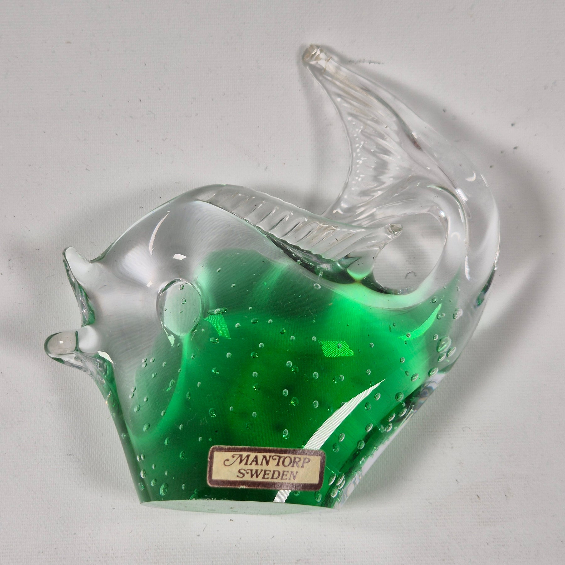 Upptäck denna vackra och unika glasfisk från Mantorp Sweden, en perfekt touch av retro för varje hem.