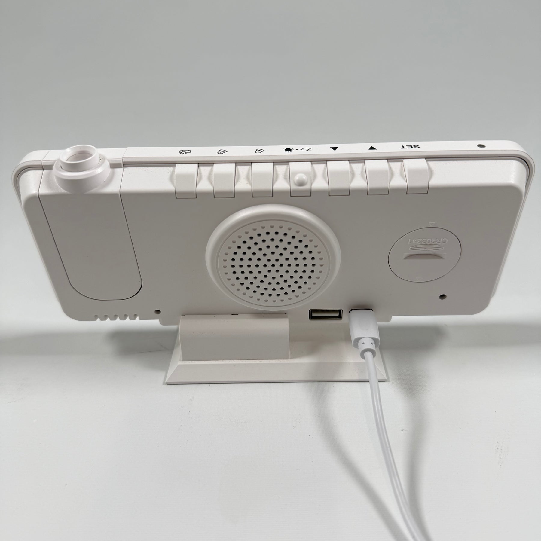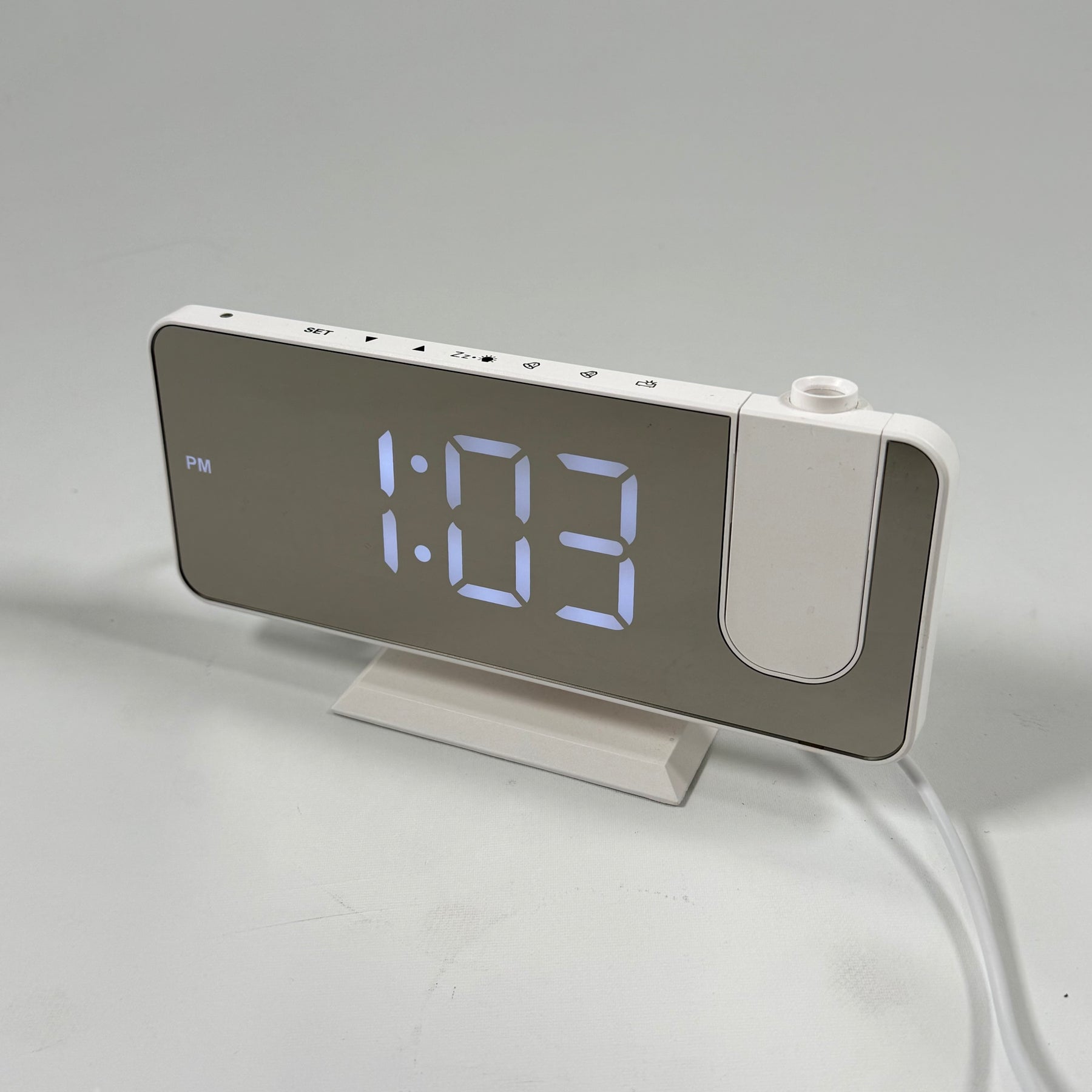 Denna moderna väckarklocka visar tiden tydligt med sin stora blå LED-display och har en elegant, minimalistisk design som passar perfekt på nattduksbordet. Den är inte bara en väckarklocka, utan även utrustad med en inbyggd FM-radio och möjlighet för USB-laddning, vilket gör den till en mångsidig enhet för dagligt bruk. Trots att den är begagnad är den i mycket gott skick och fungerar som den ska utan synliga skador.Produktspecifikationer