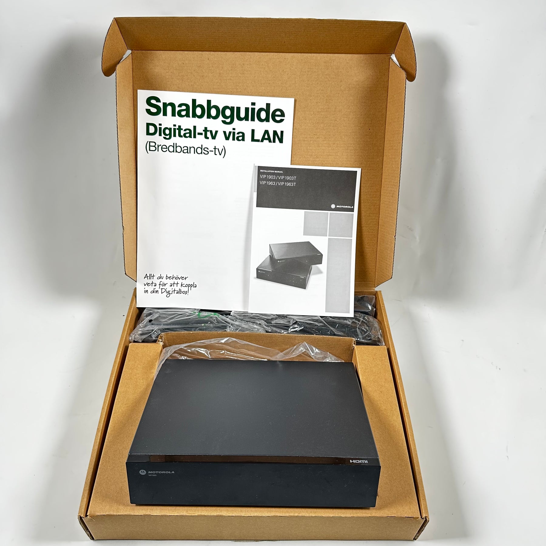 Denna Motorola VIP1903 digital-TV mottagare är skräddarsydd för att förvandla ditt sätt att konsumera TV. Med dess kompakta design och avancerade teknologi erbjuder den en förstklassig bildkvalitet och tillförlitlig prestanda. Produkten är begagnad men är i utmärkt skick och kommer komplett med originalförpackning och snabbguide, vilket gör den idealisk för alla som önskar en problemfri upplevelse.