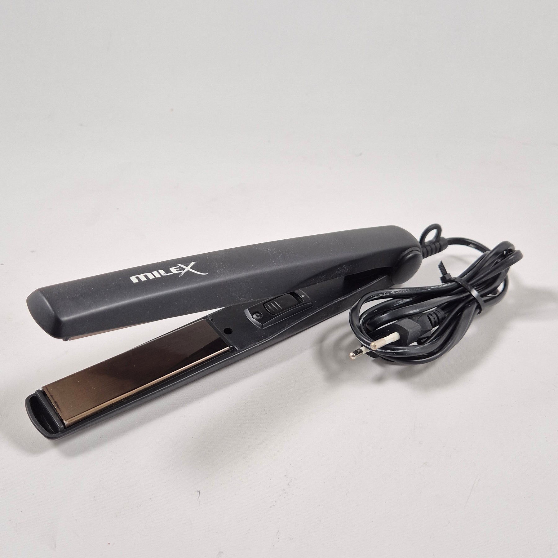 Denna plattång från Milex är ett utmärkt val för den som uppskattar stil och effektivitet. Den är utformad för att skonsamt och effektivt räta ut håret med sitt keramiska värmesystem. Den kompakta storleken gör den enkel att använda och perfekt för både hemmabruk och resor. Trotts att den är begagnad, är den i mycket gott skick och redo att användas direkt.Produktspecifikationer