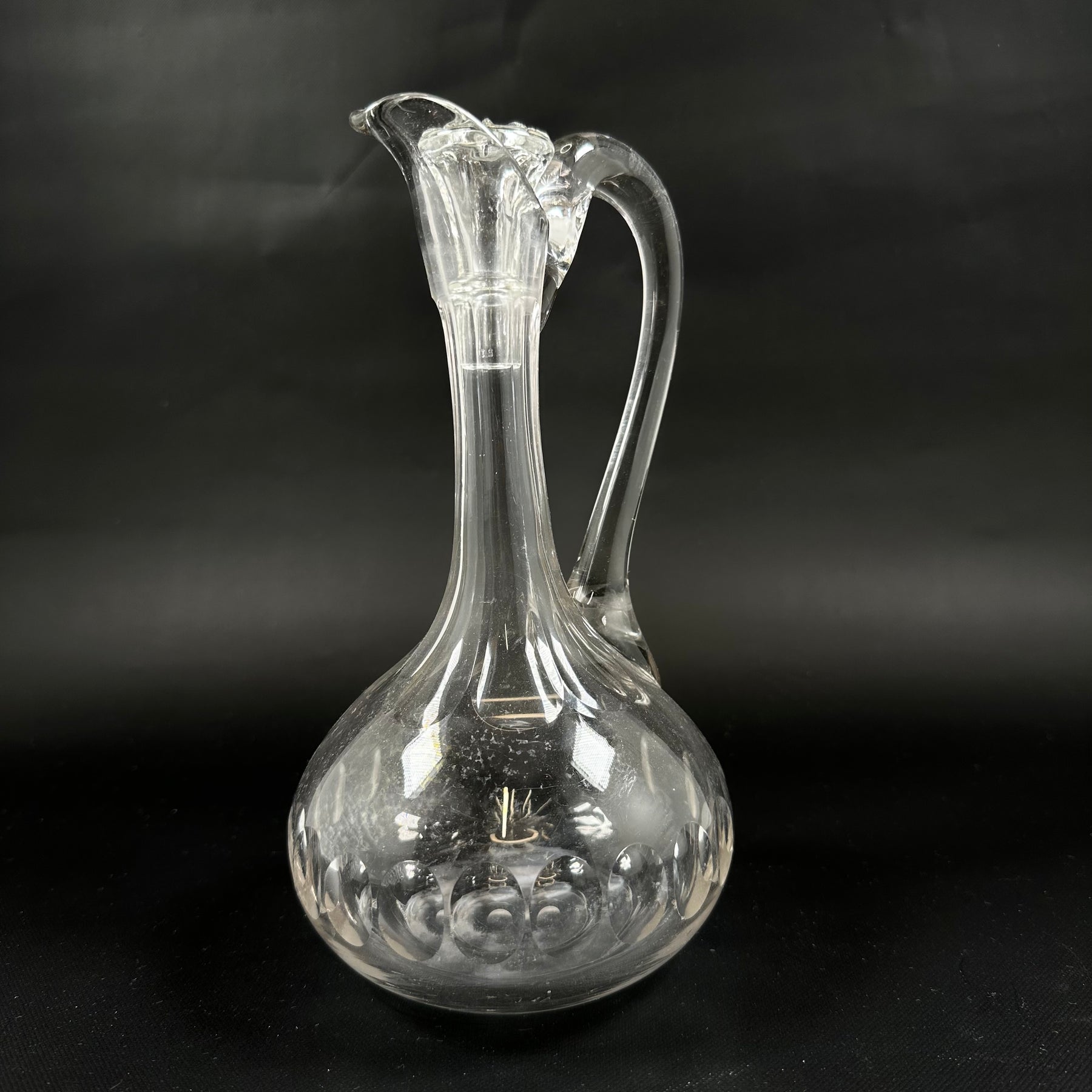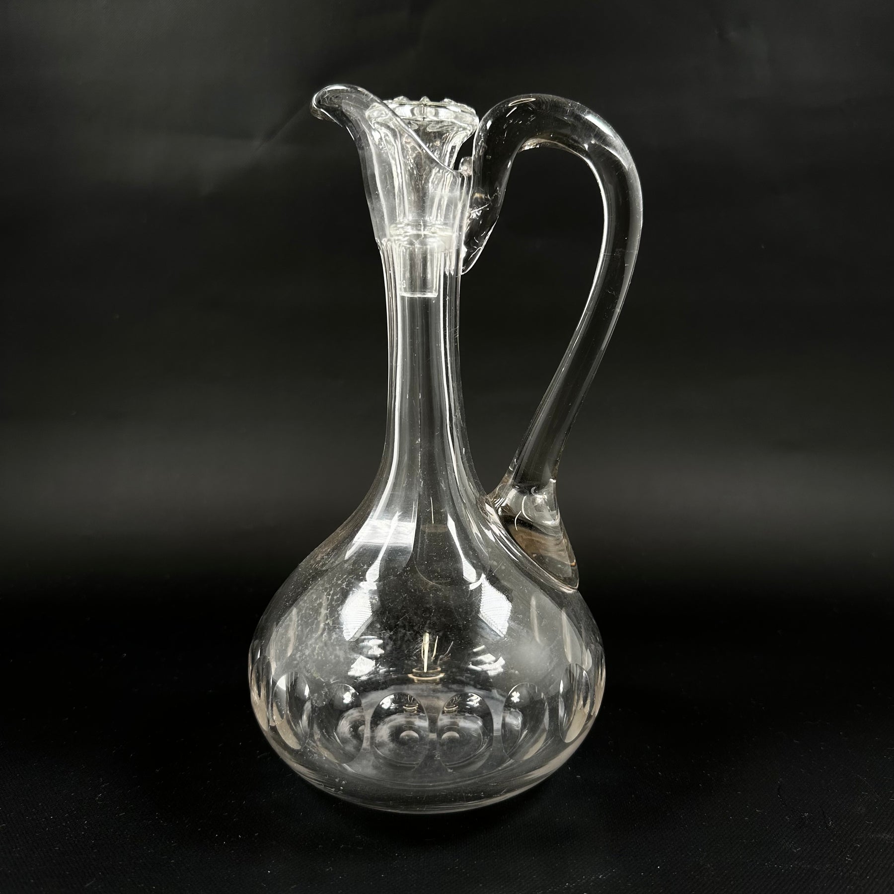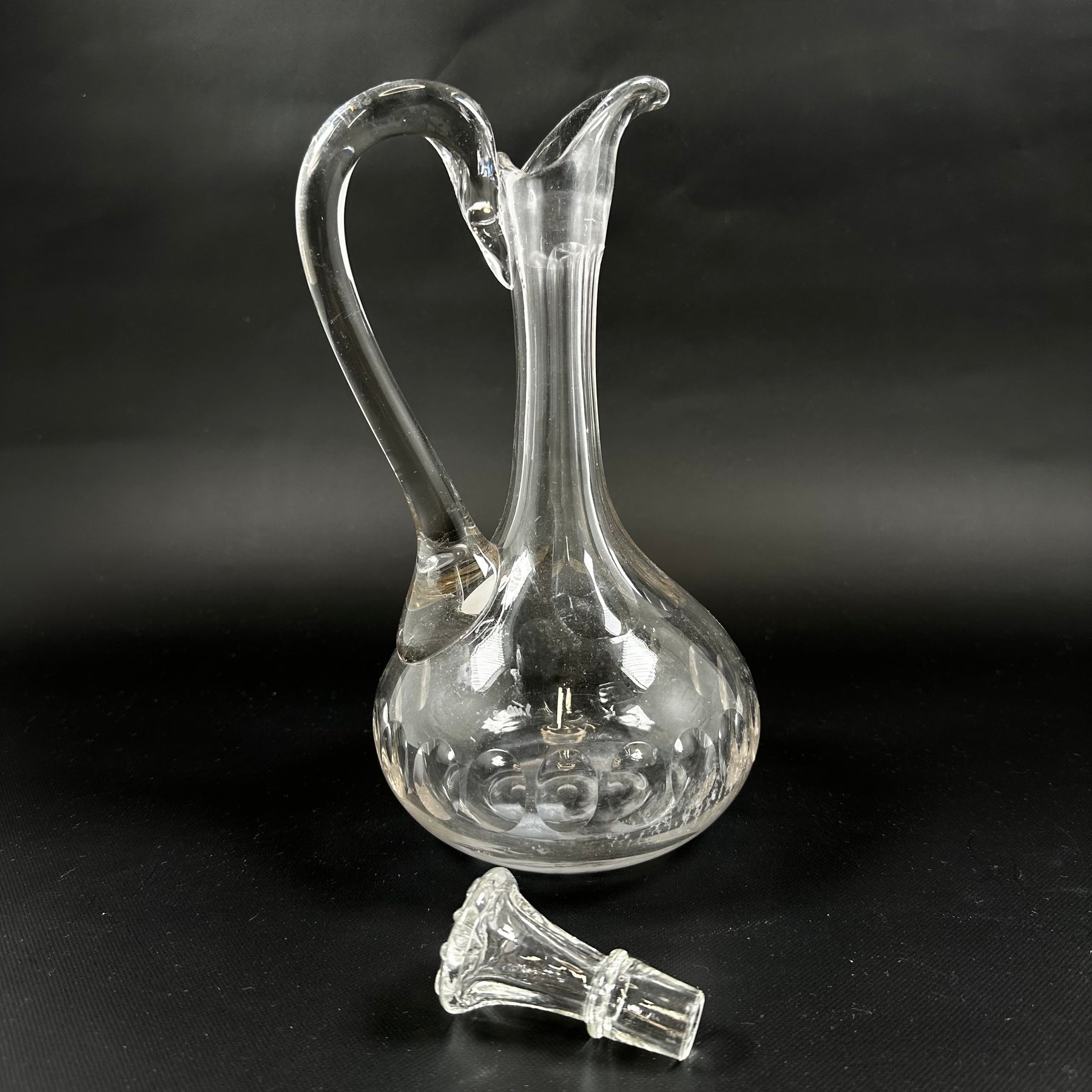 Denna karaff är skapad av genomskinligt glas med en smakfull och sofistikerad form. Den är idealisk för att servera allt från vatten till vintageviner. Dess slående design och smidiga handtag gör den inte bara praktisk utan också till en stilfull detalj i ditt kök eller matsal. Karaffen är begagnad men återstår i utmärkt skick.Produktspecifikationer