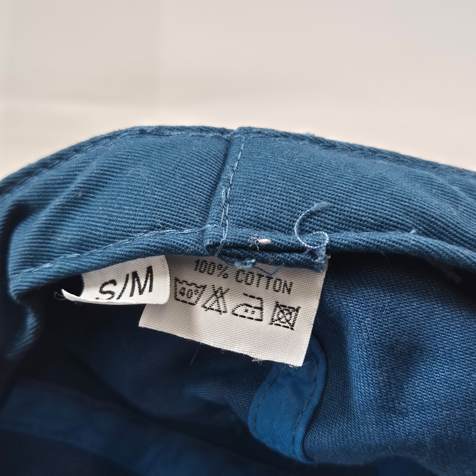 Denna distinkta blå baseballkeps pryds av en iögonfallande röd bokstav 'J' och ett detaljerat emblem på sidan som tillför en retrokänsla. Tillverkad av 100% bomull, erbjuder den både komfort och stil för dagligt bruk. Kepsen är begagnad men bibehåller ett mycket gott skick, vilket gör den till ett utmärkt val för både funktion och mode.