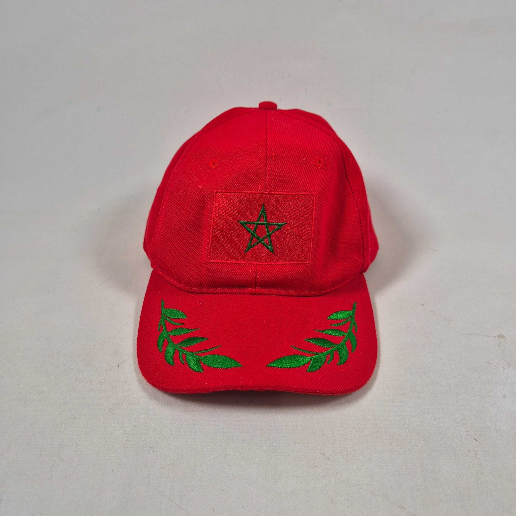 Denna röda keps pryds av ett elegant broderat mönster med gröna blad och en stiliserad stjärna. Det är inte bara en praktisk accessoar för soliga dagar utan också en snygg detalj som kompletterar din outfit. Kepsen är tillverkad i ett hållbart material som ger en bekväm passform och långvarig användning. Skicket är begagnat men mycket gott, utan synliga defekter.