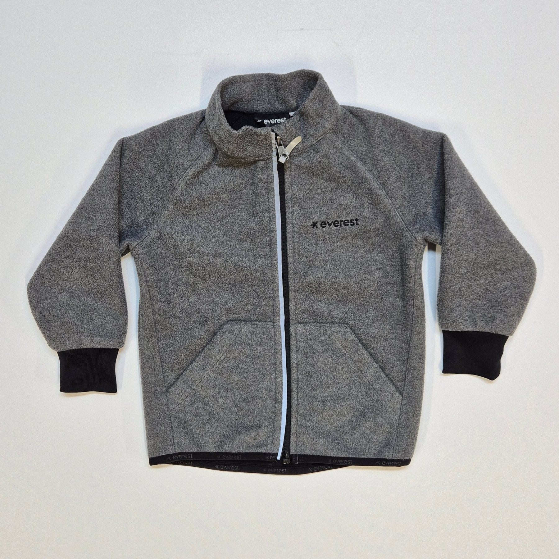 Denna grå Everest barnjacka är perfekt för att hålla ditt barn varmt under de kyliga dagarna. Jackan är använd men i gott skick, och dess tjocka material erbjuder utmärkt värme.