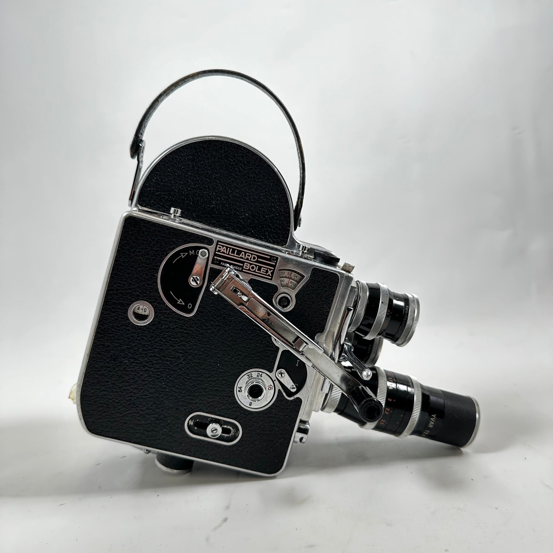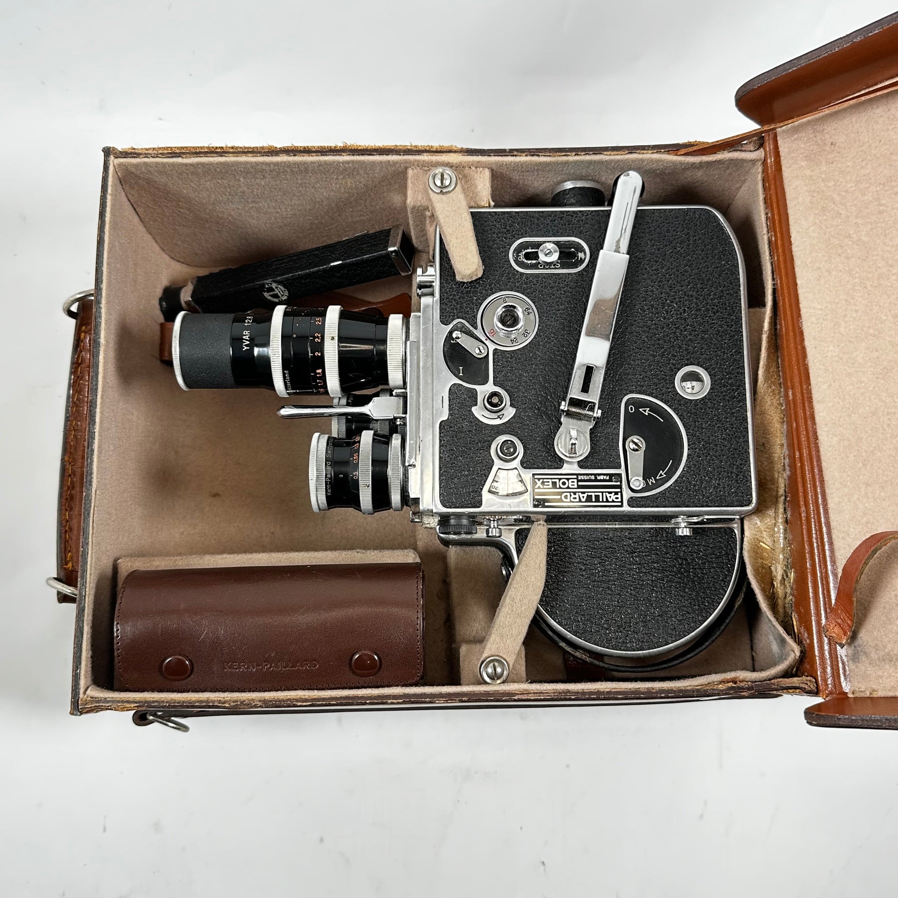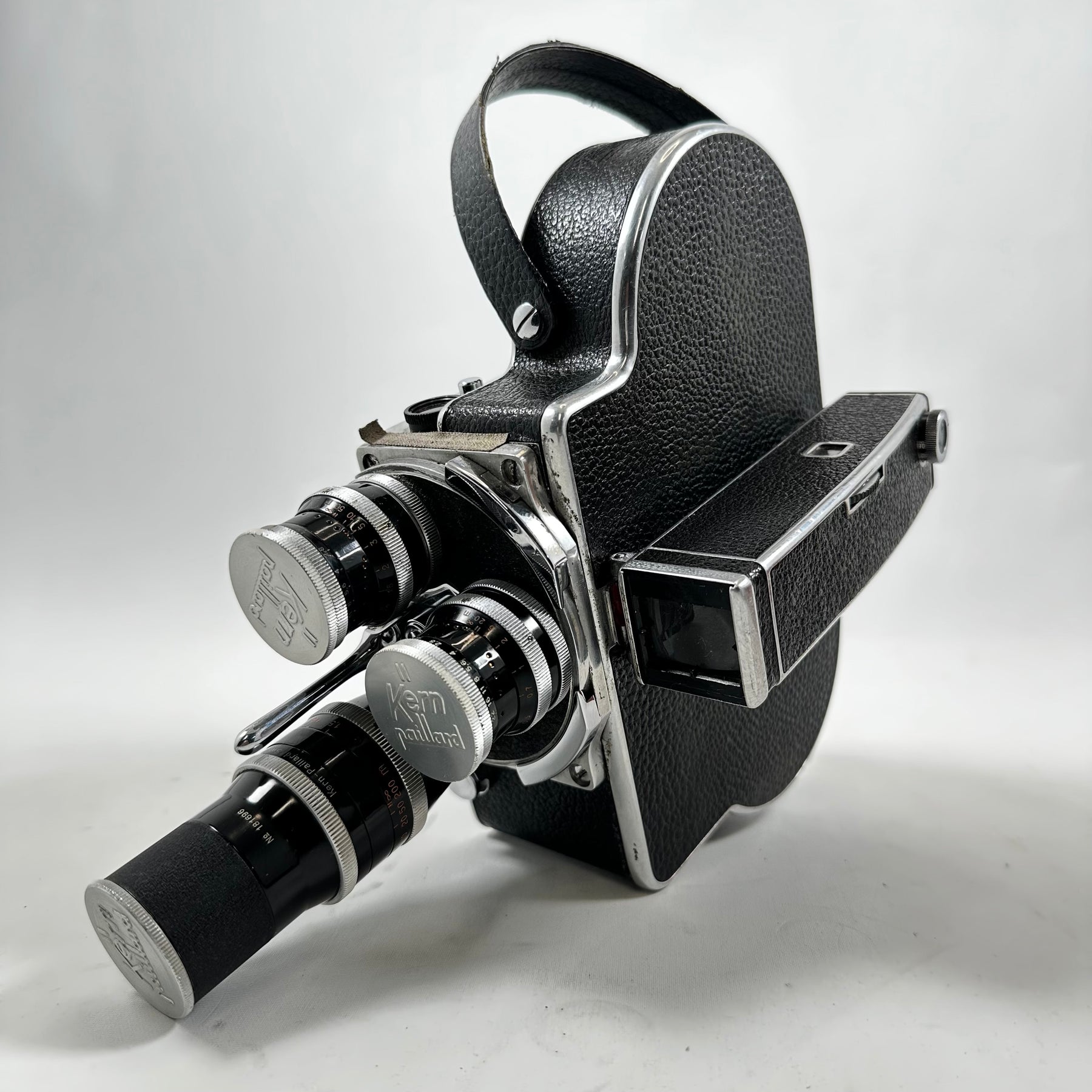Denna filmkamera är en ikonisk modell som erbjuder en fascinerande inblick i fotograferingens guldålder. Med märkning från Kern Paillard och dess ytterst exakta linsmekanismer, är denna kamera inte bara en kraftfull pjäs, utan också en utsökt konstverk. Dess robusta konstruktion och välvårdade tillbehör såsom objektiv, mätinstrument och transportväska gör den till en idealisk följeslagare för den seriösa filmskaparen eller samlaren. Produkten är begagnad men har bevarats i mycket gott skick, vilket gör den till ett perfekt val för de som uppskattar tidlösa, funktionella artefakter.Produktspecifikationer