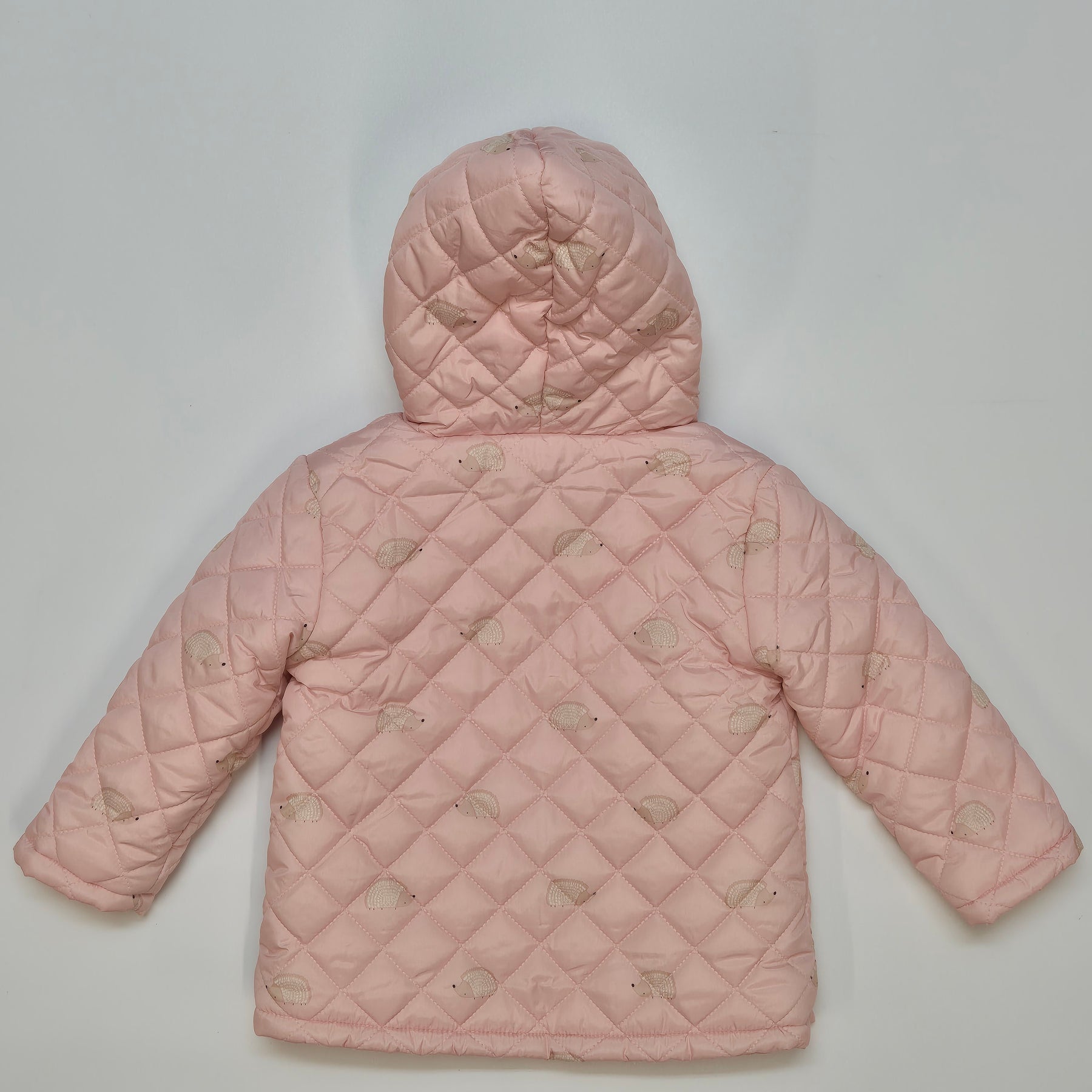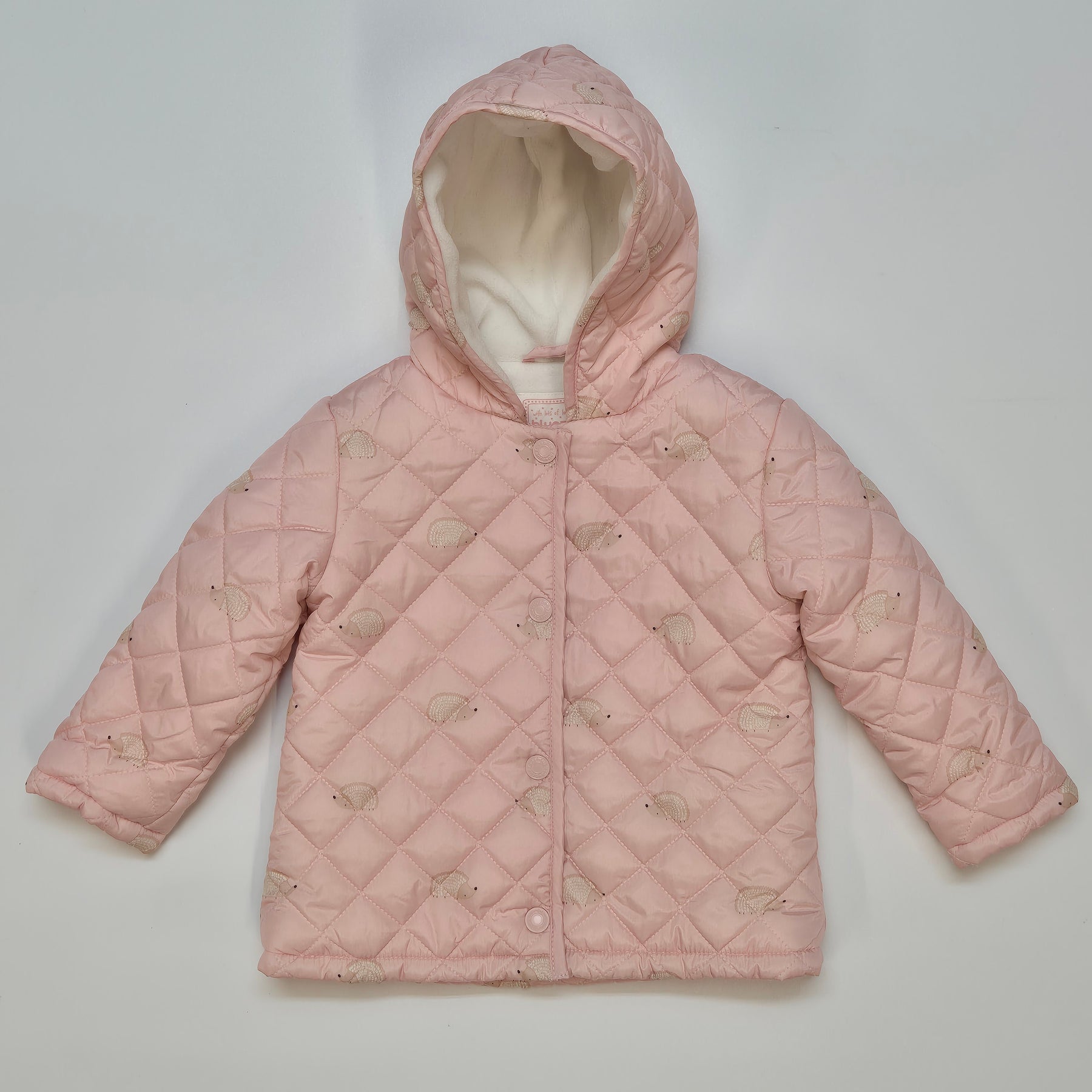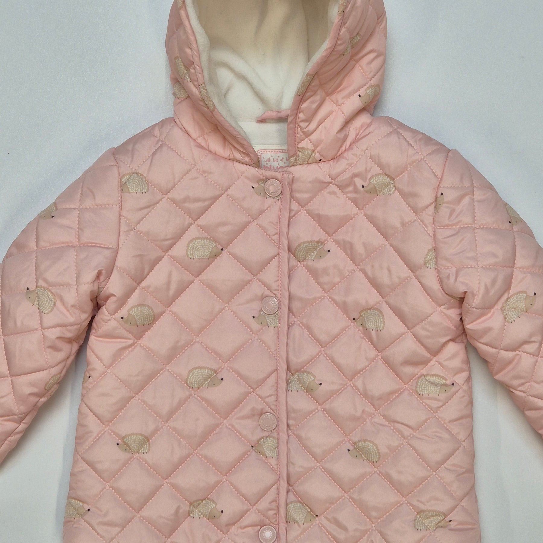 Denna ljusrosa vadderade jacka är designad för att hålla ditt barn varmt och bekvämt. Tillverkad av Bluezoo, känd för sina hållbara och pålitliga barnkläder, erbjuder denna jacka både stil och funktionalitet med sin gulliga mönsterdetalj. Den är försedd med en huva och lämplig för barn mellan 18-24 månader. Jackan är begagnad men välbevarad och i mycket gott skick.