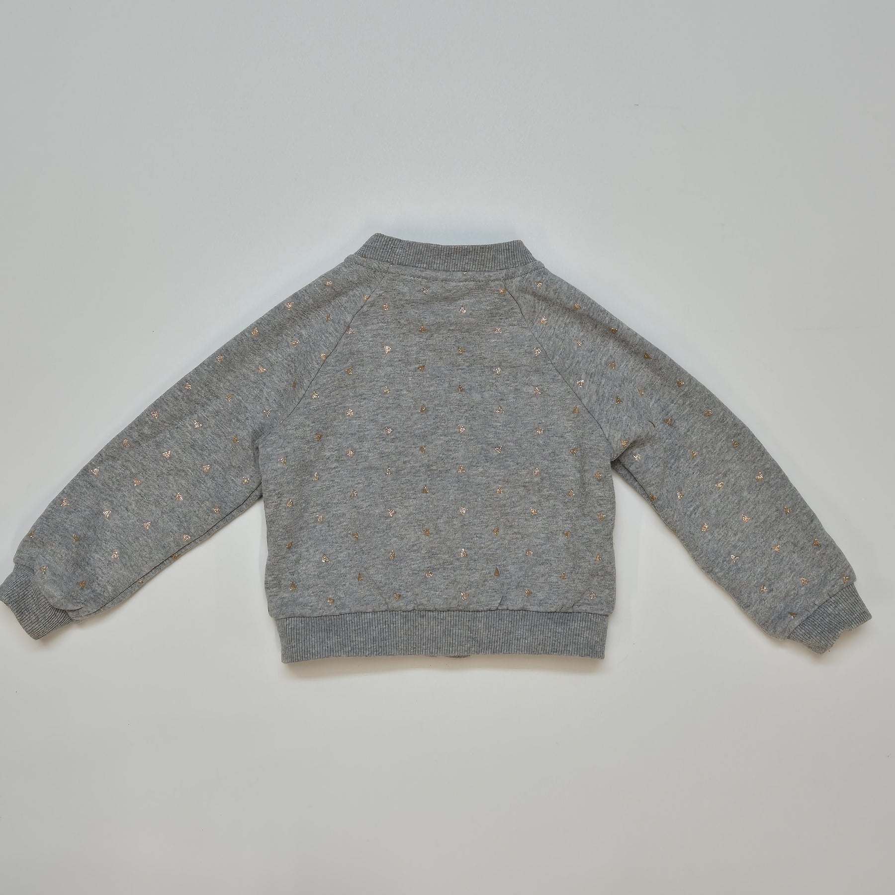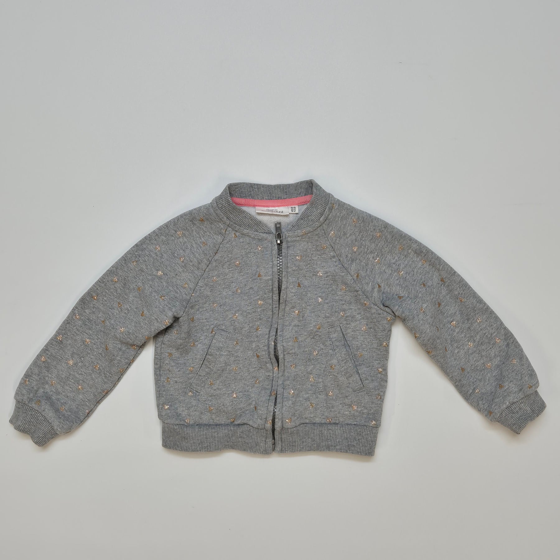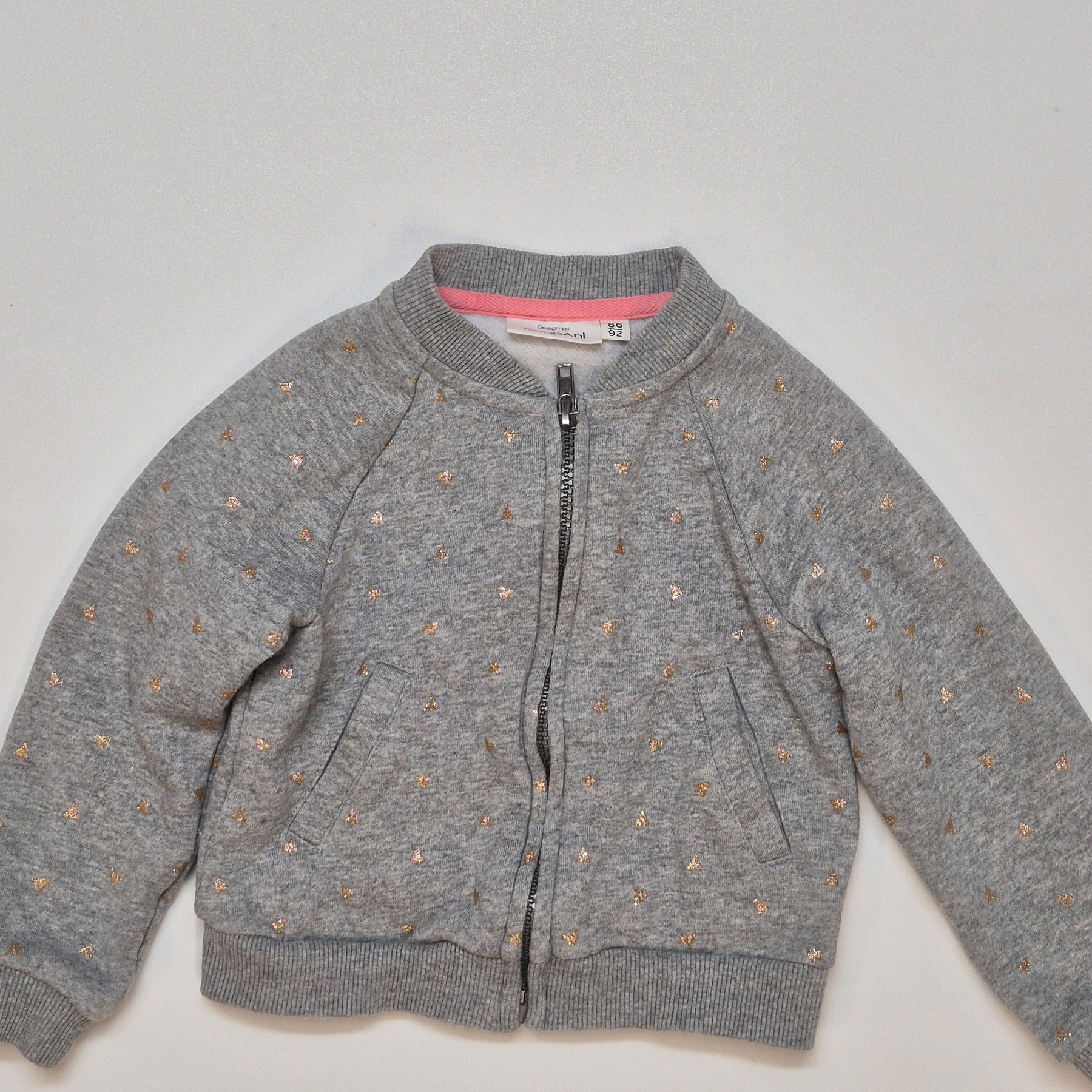 Denna barnjacka i grått ullblandat material har en bekväm passform och är dekorerad med små, guldfärgade hjärtan. Jackan från välrenommerade KappAhl är både praktisk och söt, vilket gör den idealisk för kyligare dagar. Den är lämplig för alla tillfällen, från lekplatsen till familjesammankomster. Jackan är begagnad men i mycket gott skick, vilket gör den till ett utmärkt val för miljömedvetna föräldrar.