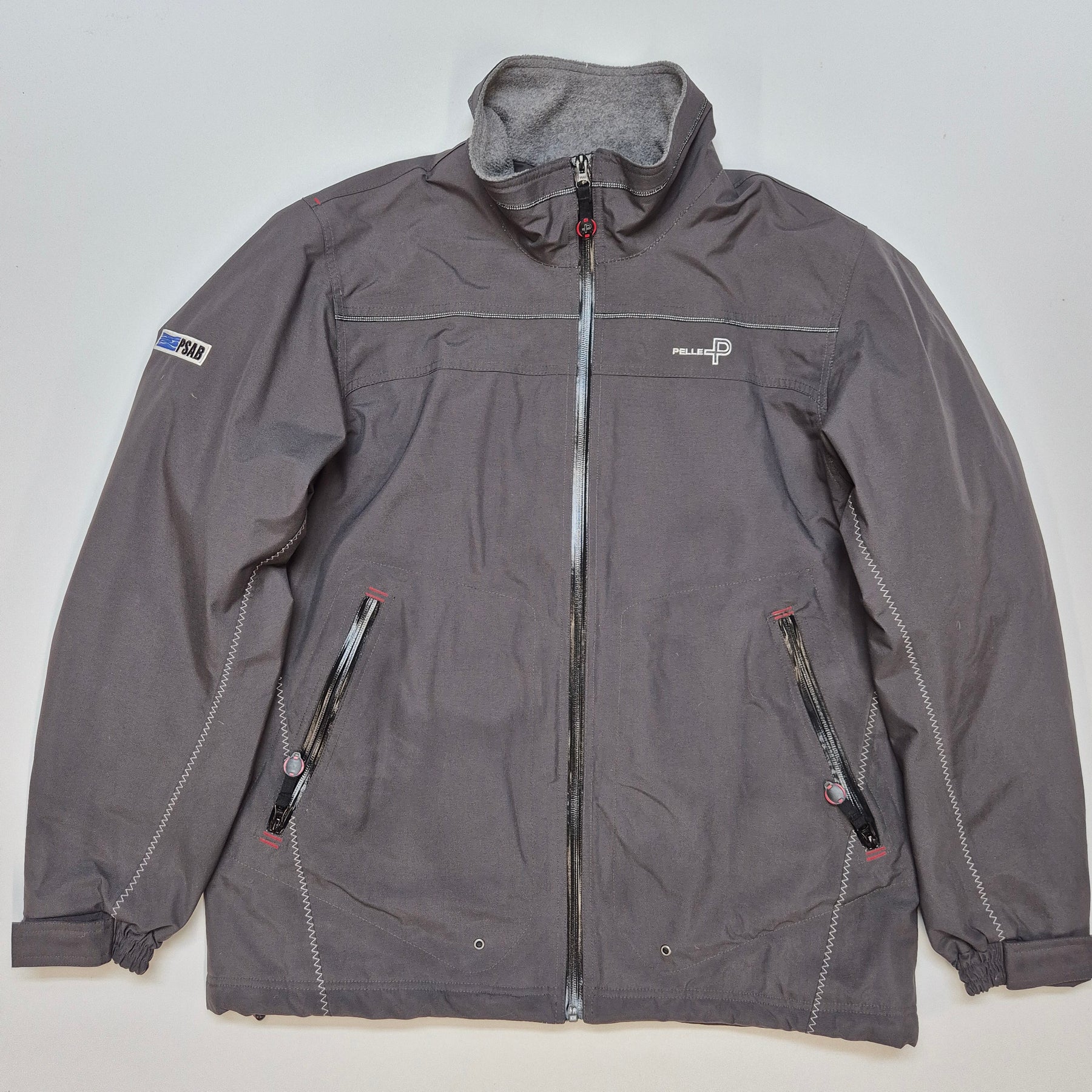 Denna seglarjacka från Pelle Petterson är inte bara funktionell utan också designad med omsorg om detaljer. Jackan är utrustad med flera fickor med blixtlås, högkrage för extra skydd och en justerbar dragsko i midjan för optimal passform. Det slitstarka materialet och de genomtänkta funktionerna gör den idealisk för såväl segling som andra utomhusäventyr. Produkten är begagnad men i mycket gott skick, vilket gör den till ett utmärkt köp för den miljömedvetne.Produktspecifikationer