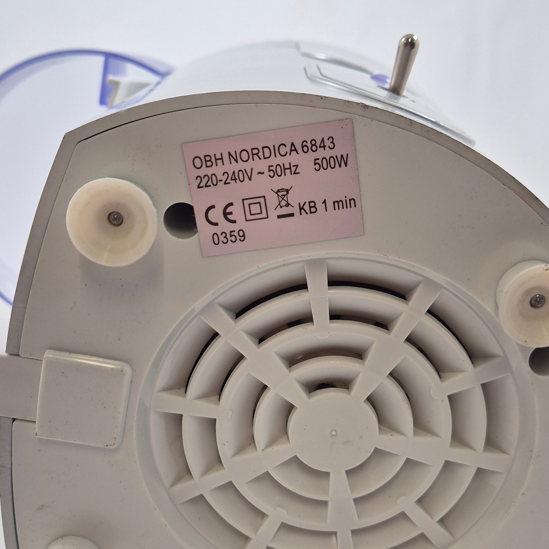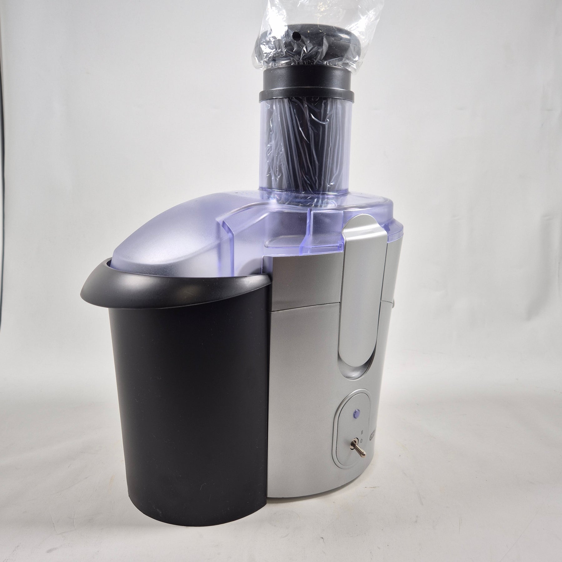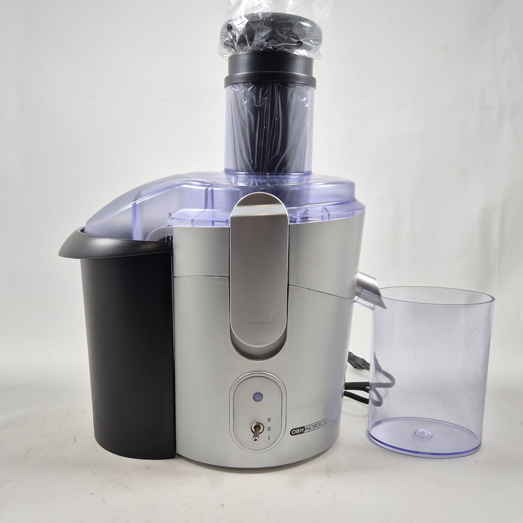 Denna robusta juicemaskin från OBH Nordica är designad för att enkelt kunna pressa juice ur såväl frukt som grönsaker. Den starka motorn på 500 Watt och den stora matartratt gör juicetillverkningen snabb och smidig. Den kompakta designen gör att den passar perfekt i alla kök, och det genomskinliga och avtagbara kärlet låter dig enkelt se när det är dags att tömma. Juicemaskinen är begagnad men i mycket gott skick och redo att användas för att skapa hälsosamma drycker hemma.