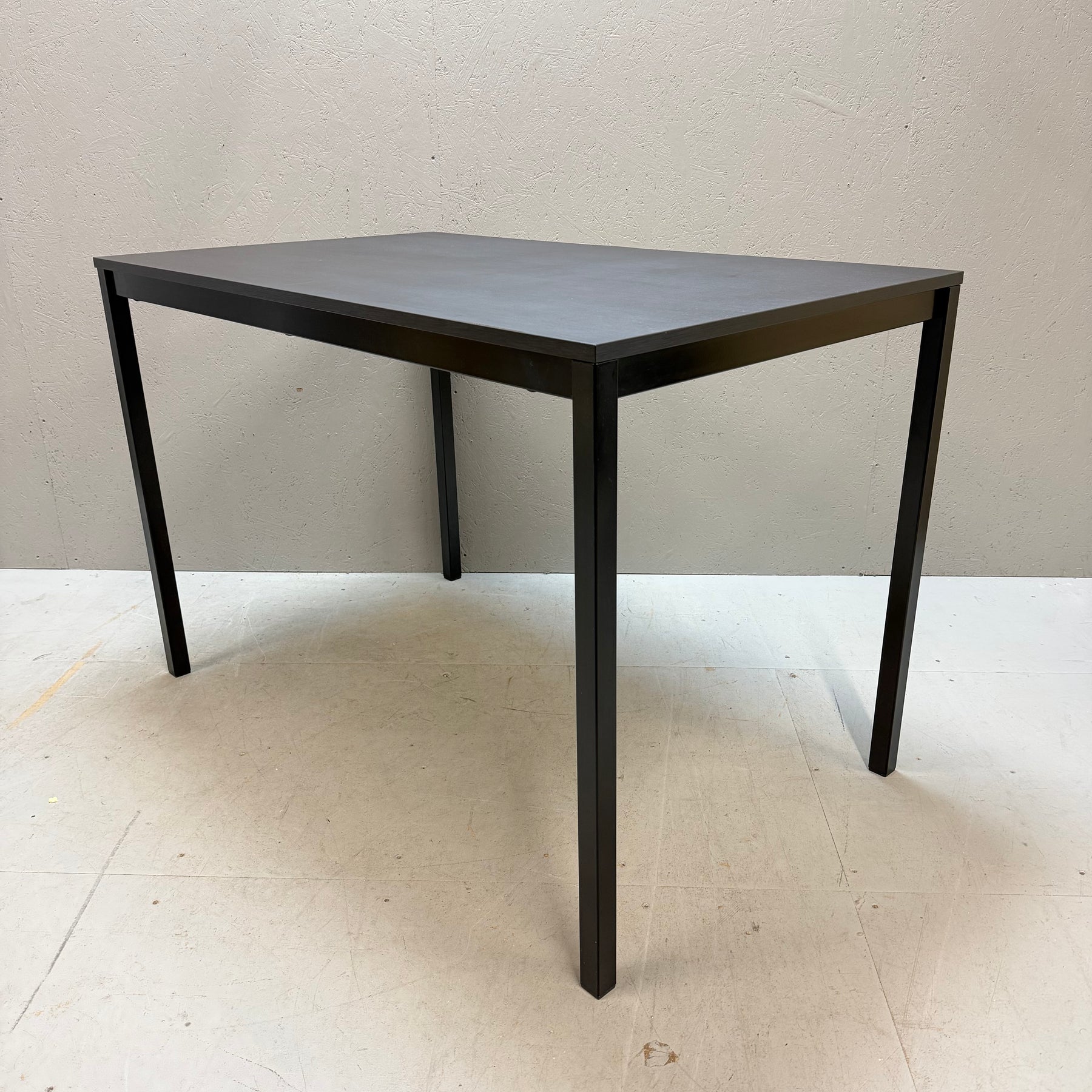 Detta stilrena matbord kännetecknas av sin simpla yet effektiva design och passar väl in i såväl moderna som mer traditionella interiörer. Bordets rena linjer och mörka färgsättning gör det lätt att matcha med olika stolar och dekorstilar. Skapat för att hålla, detta bord är inte bara en visuell höjdpunkt utan också praktiskt för vardagsanvändning. Bordet är begagnat men förblir i mycket gott skick.