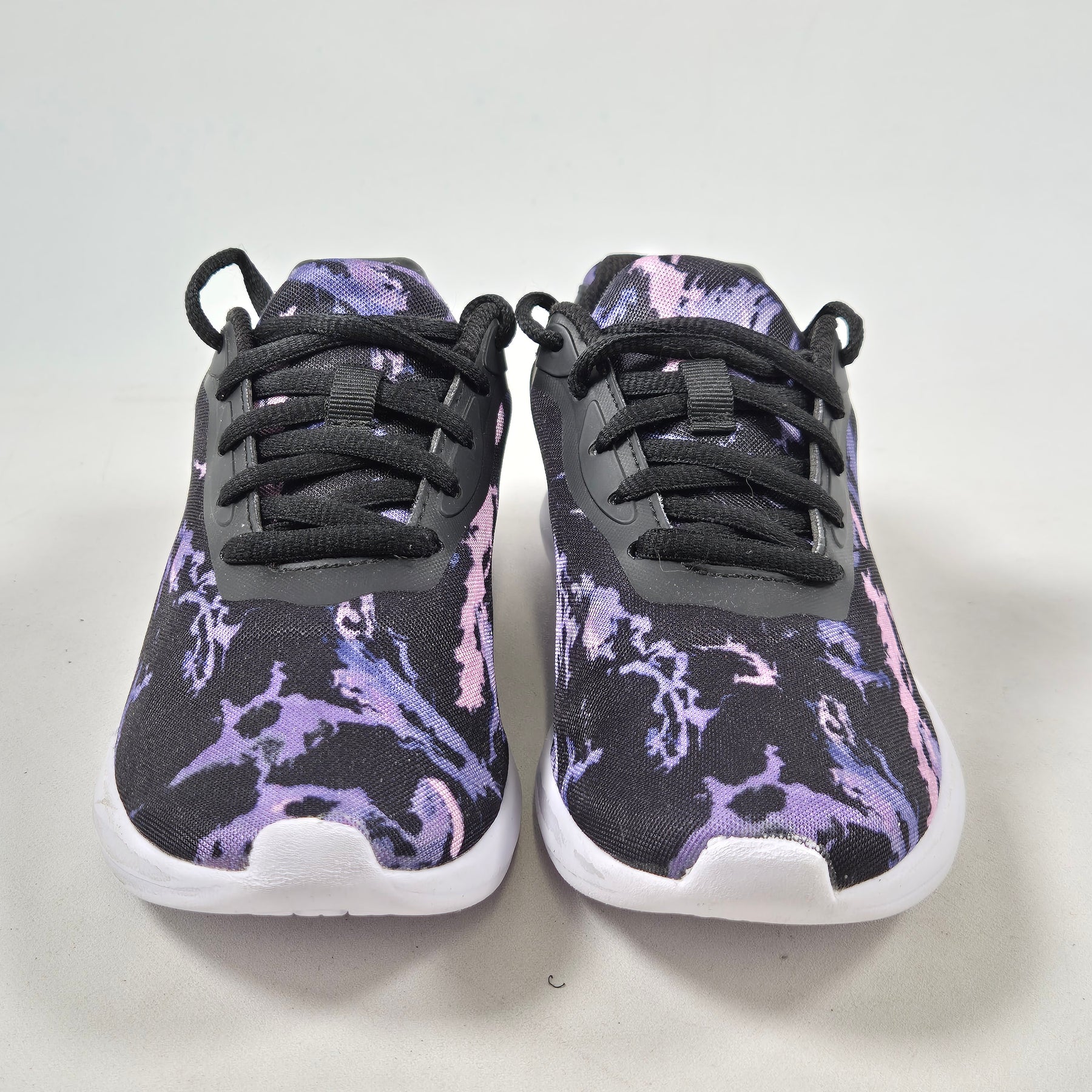 Dessa sneakers är inte bara bekväma men kommer också med en iögonfallande kamouflageinspirerad design i svart och lila. Skorna är idealiska för den som uppskattar stil och komfort. Kommerserad i bra skick, dessa skor kan bli en pålitlig följeslagare i dina vardagsäventyr.