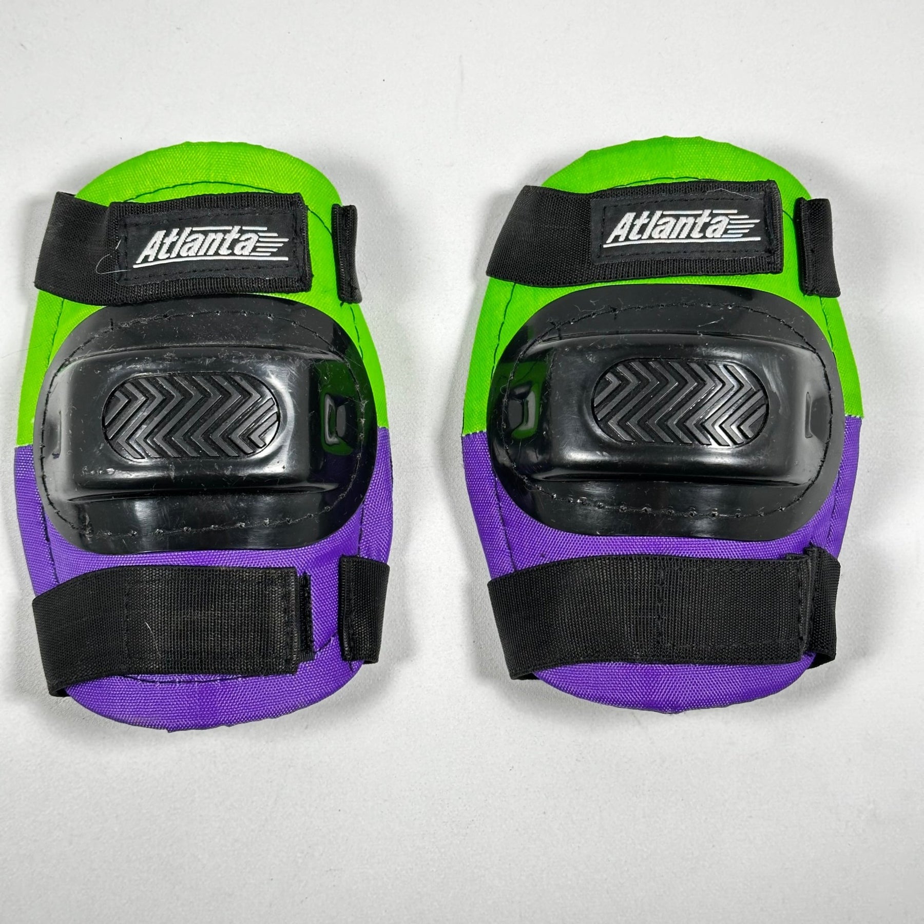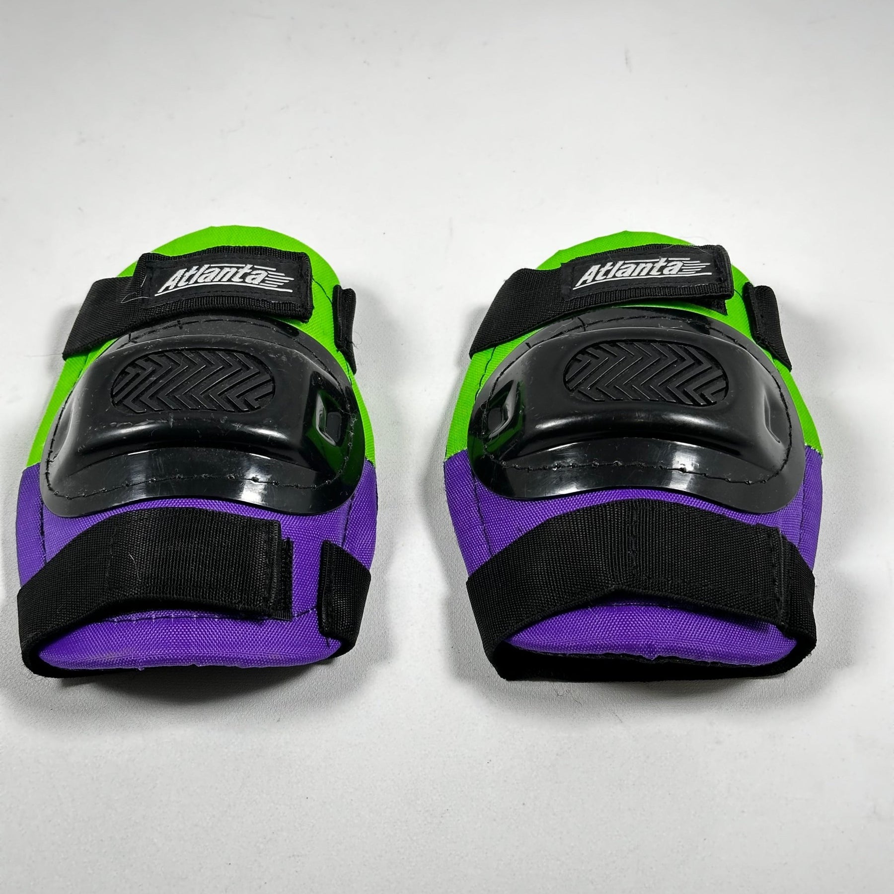 Dessa knäskydd från Atlanta är designade för att ge maximalt skydd och komfort under aktiviteter som inlines och skateboardåkning. De ljusgröna och lila accenterna gör dem inte bara funktionella utan också stilfulla. Knäskydden är begagnade men i mycket gott skick, perfekta för dig som vill vara både säker och trendig på banan.