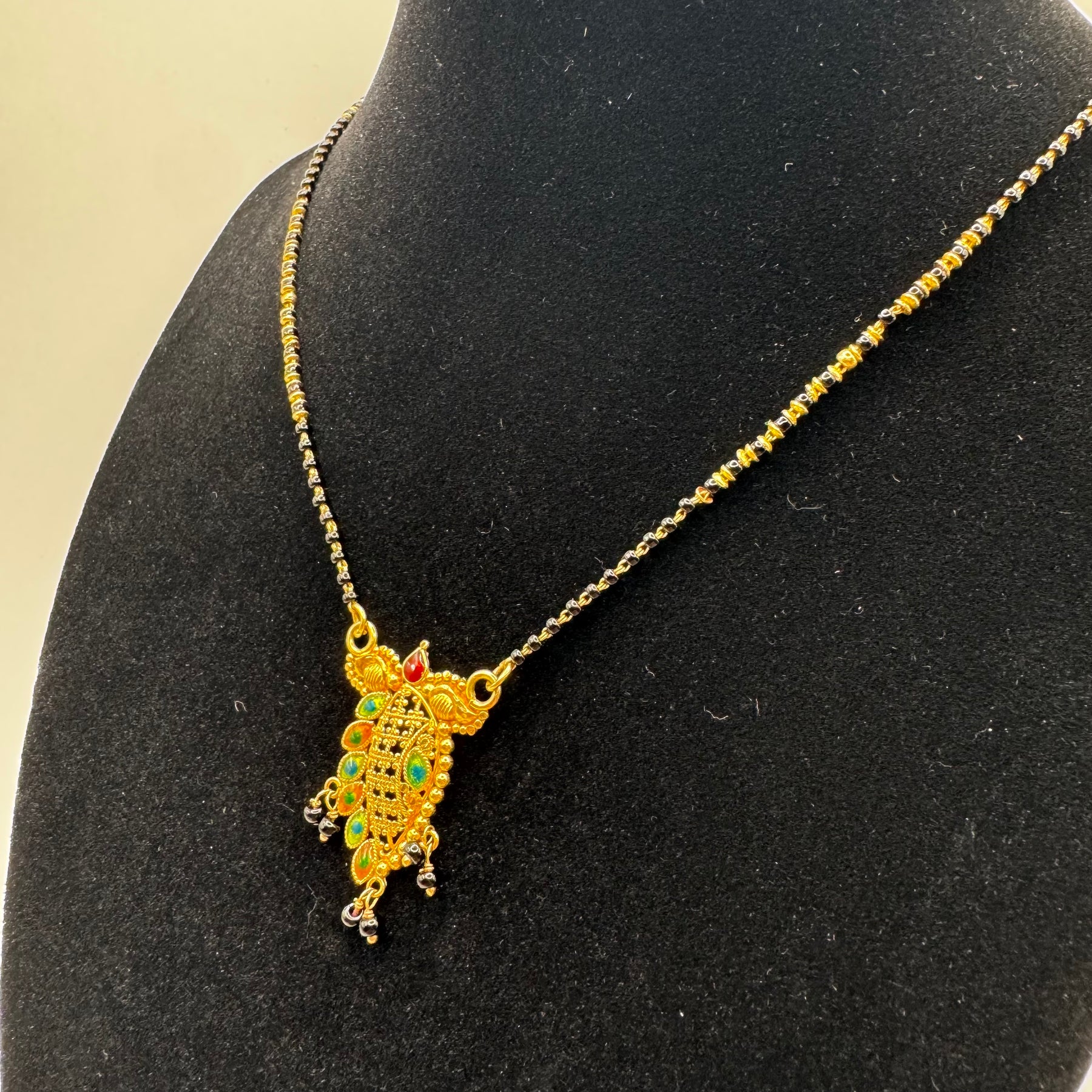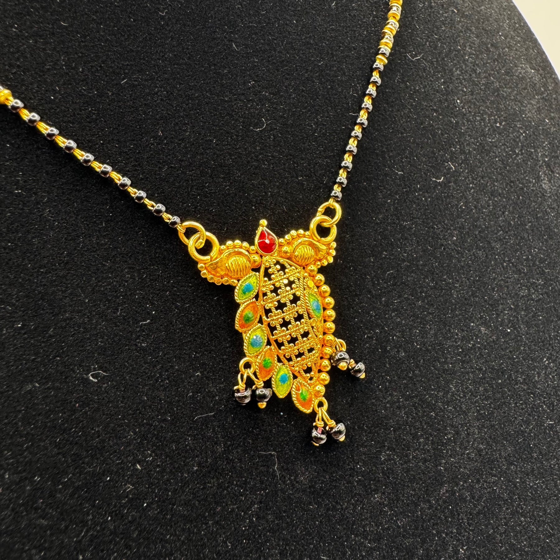 Denna vackra halskedja utmärker sig med sin rikt dekorerade berlock som är utsmyckad med flera färgglada stenar och detaljerad gyllene metall. Smycket kommer med en elegant kedja som är avvägd med både guld- och silvertonade länkar, vilket ger en modern känsla till en klassisk design. En underbar accessoar för vardagsskick eller festligare tillfällen; den är begagnad men i mycket gott skick.Produktspecifikationer