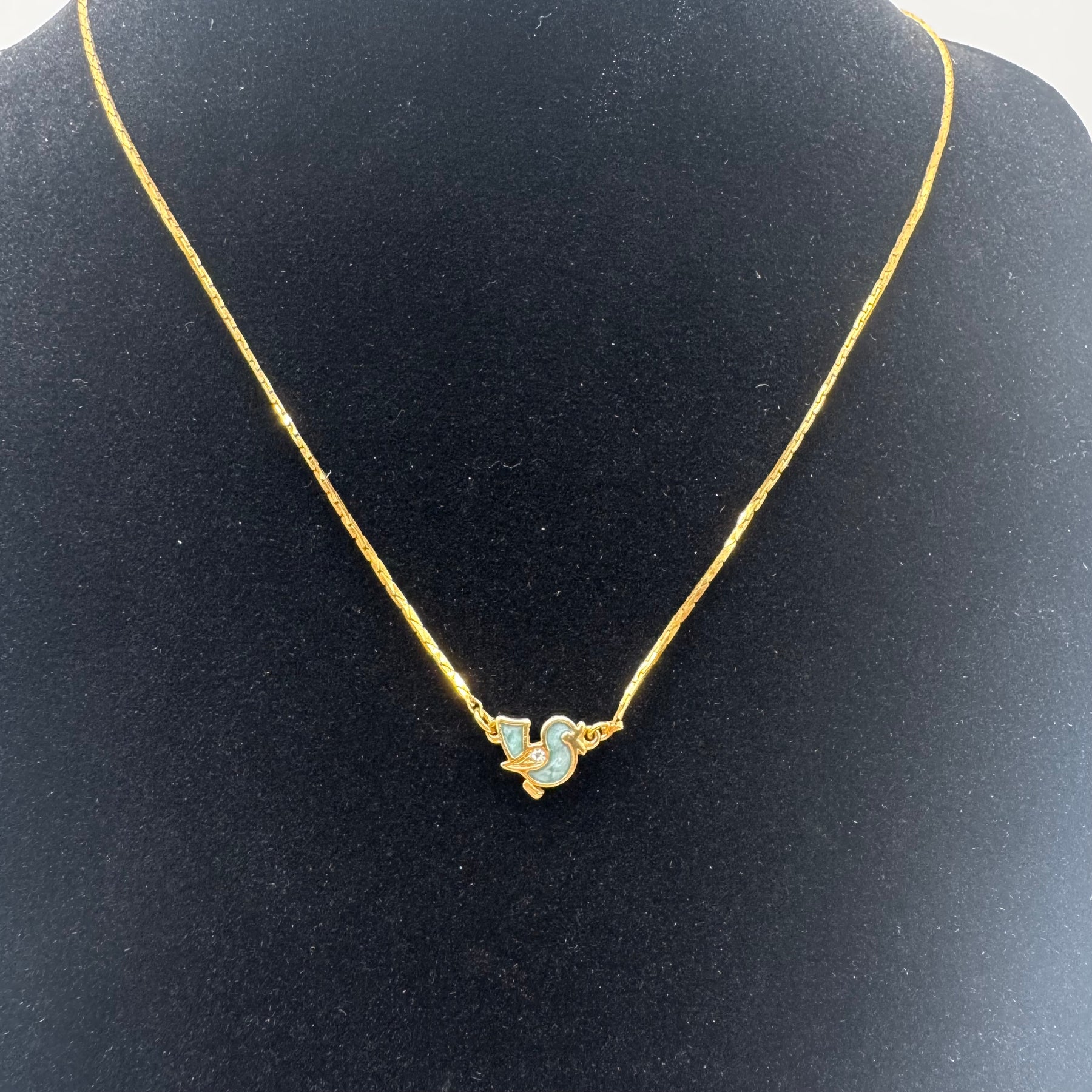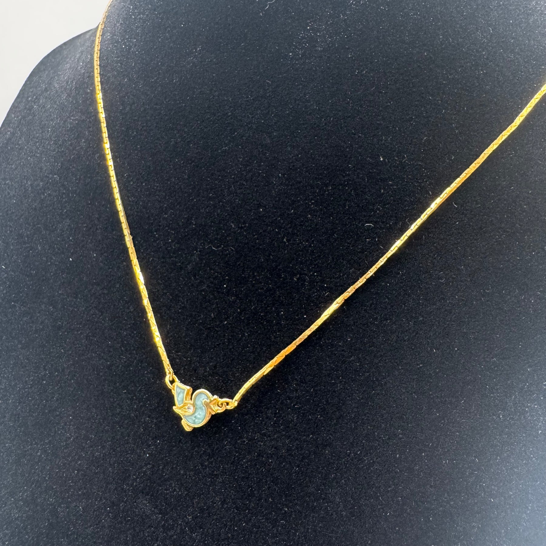 Denna charmiga guldkedja med en dekorativ bokstavshänge i form av ett "S" är både stilren och klassisk. Dess subtila design gör den till ett idealiskt val för både vardag och speciella evenemang. Hänget är fint dekorerat med blå och genomskinliga ädelstenar som ger en touch av sofistikation. Kedjan är begagnad men har bibehållit ett mycket gott skick.Produktspecifikationer