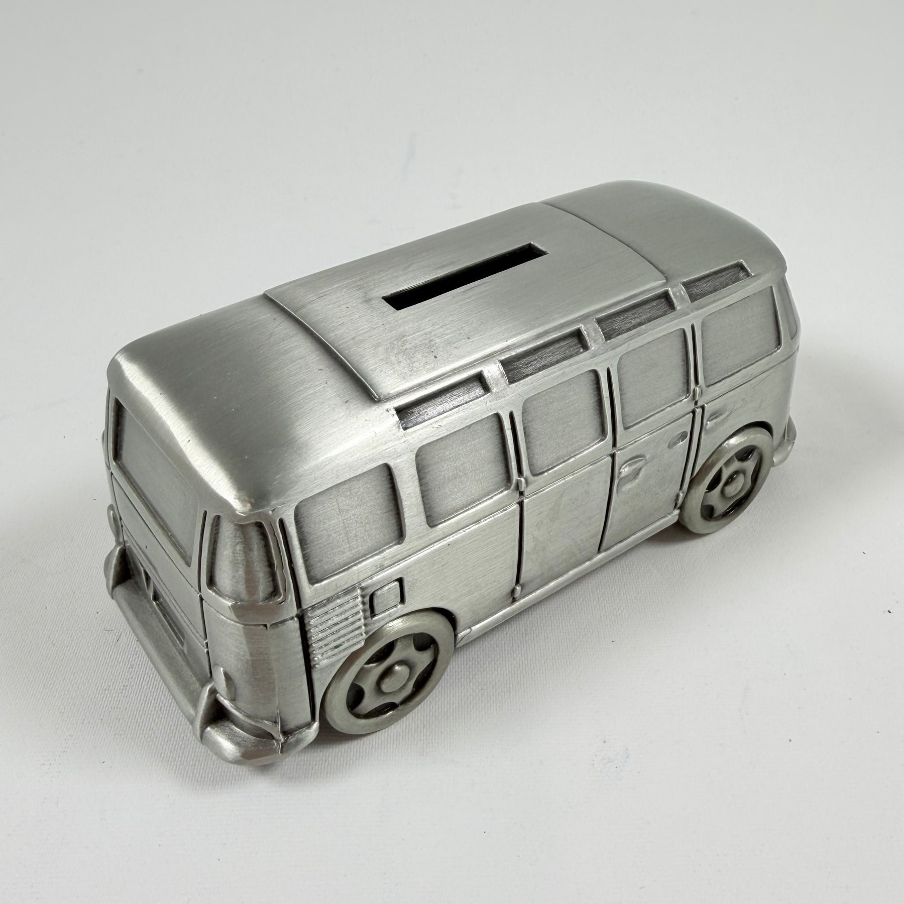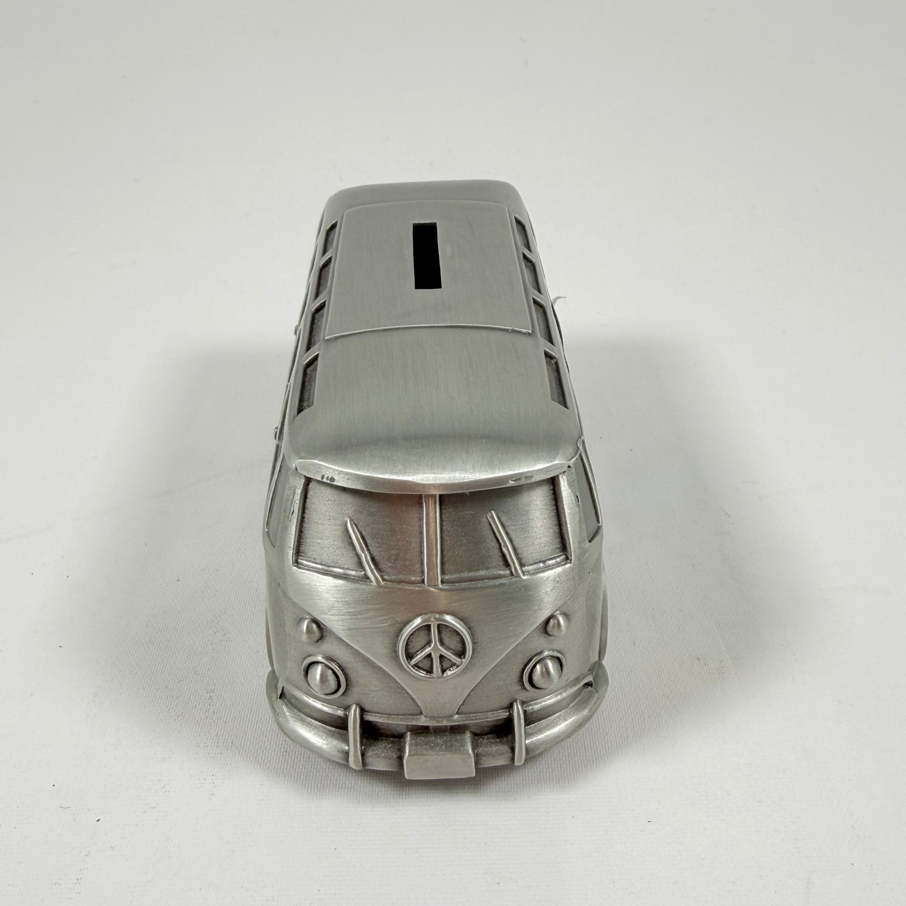 Denna dekorativa sparbössa är utformad som en vintage minibuss, perfekt för samlaren eller som en unik inredningsdetalj. Tillverkad i metal, denna artikel kombinerar funktion med en nostalgisk design, idealisk för att spara dina mynt på ett originellt sätt. Sparbössan är begagnad men är i mycket gott skick och låter dig återuppleva hippieerans charm varje gång du använder den.