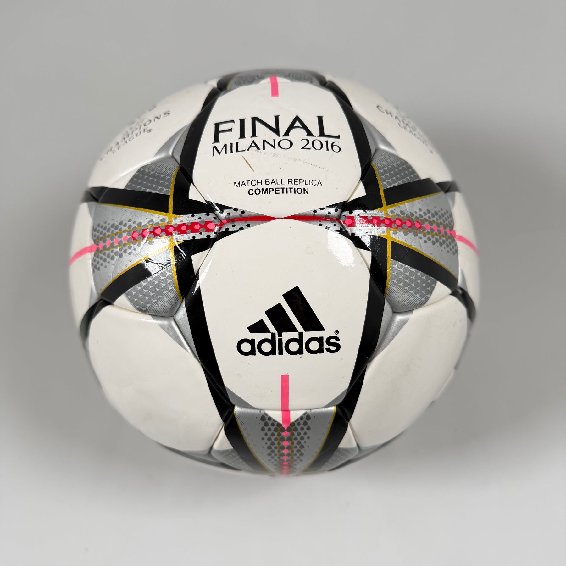 Denna fotboll är en replica av matchbollen som användes under UEFA Champions League-finalen 2016 i Milano. Tillverkad av Adidas, denna boll är inte bara för spelet utan även ett värdefullt samlarobjekt för fotbollsälskare. Perfekt för både aktiv användning och som en del av en sportminnessamling. Bollen är begagnad men fortfarande i mycket gott skick.Produktspecifikationer