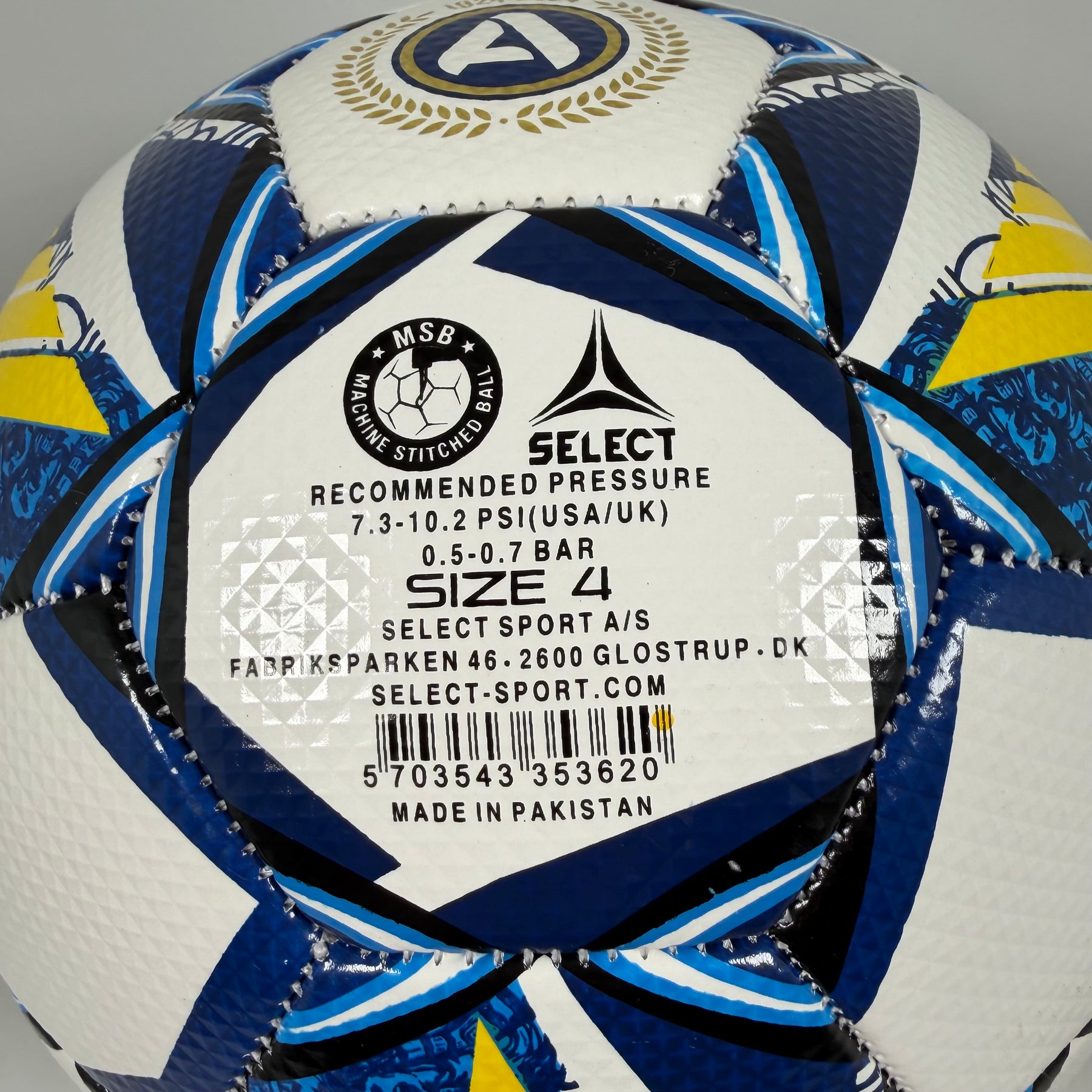 Denna fotboll är en trogen kopia av den som används i Sveriges högsta fotbollsliga, Allsvenskan. Tillverkad av Select, är den känd för sin hållbarhet och högkvalitativa konstruktion, vilket gör den idealisk för både spel och samling. Bollen är av storlek 4 och har ett maskinsytt yttre som garanterar längre hållbarhet och konstant prestanda. Perfekt för unga spelare eller som en stilig detalj i varje sportrum. I mycket gott skick med originaldesign bevarad.