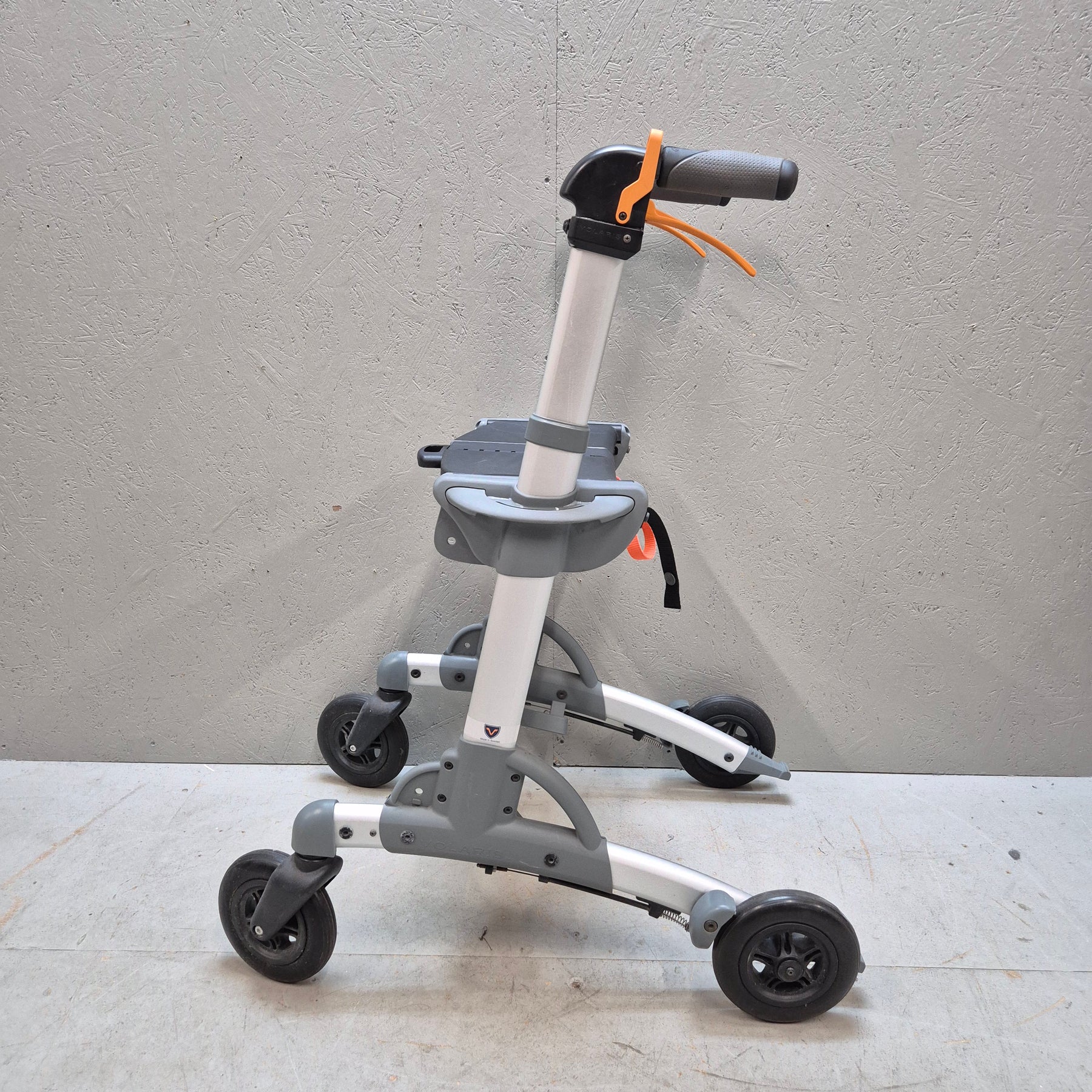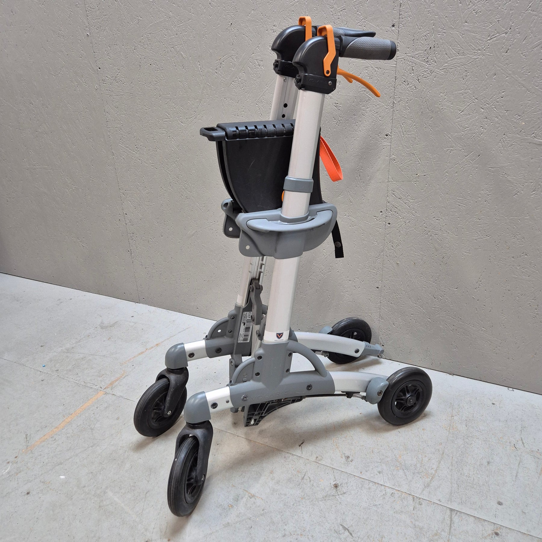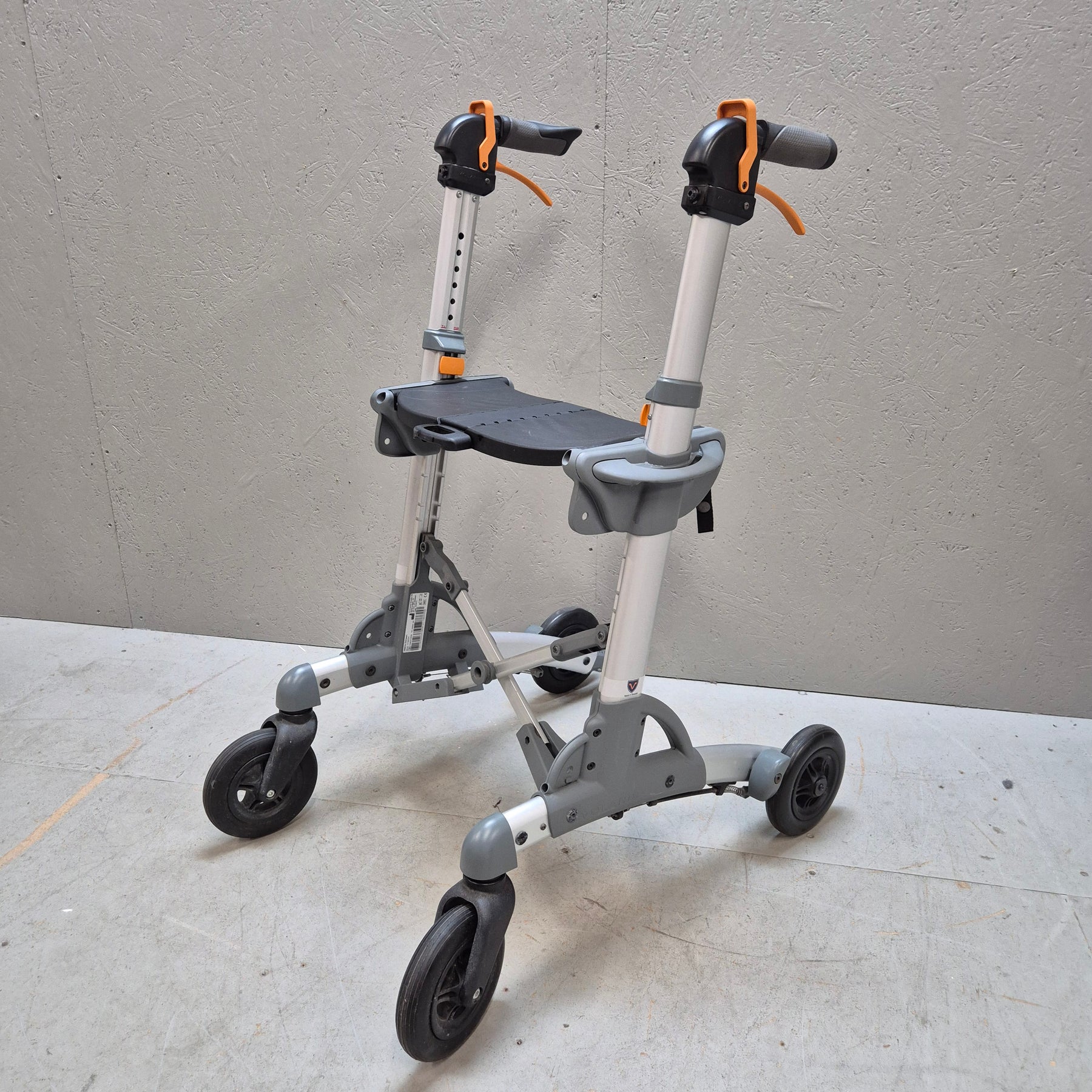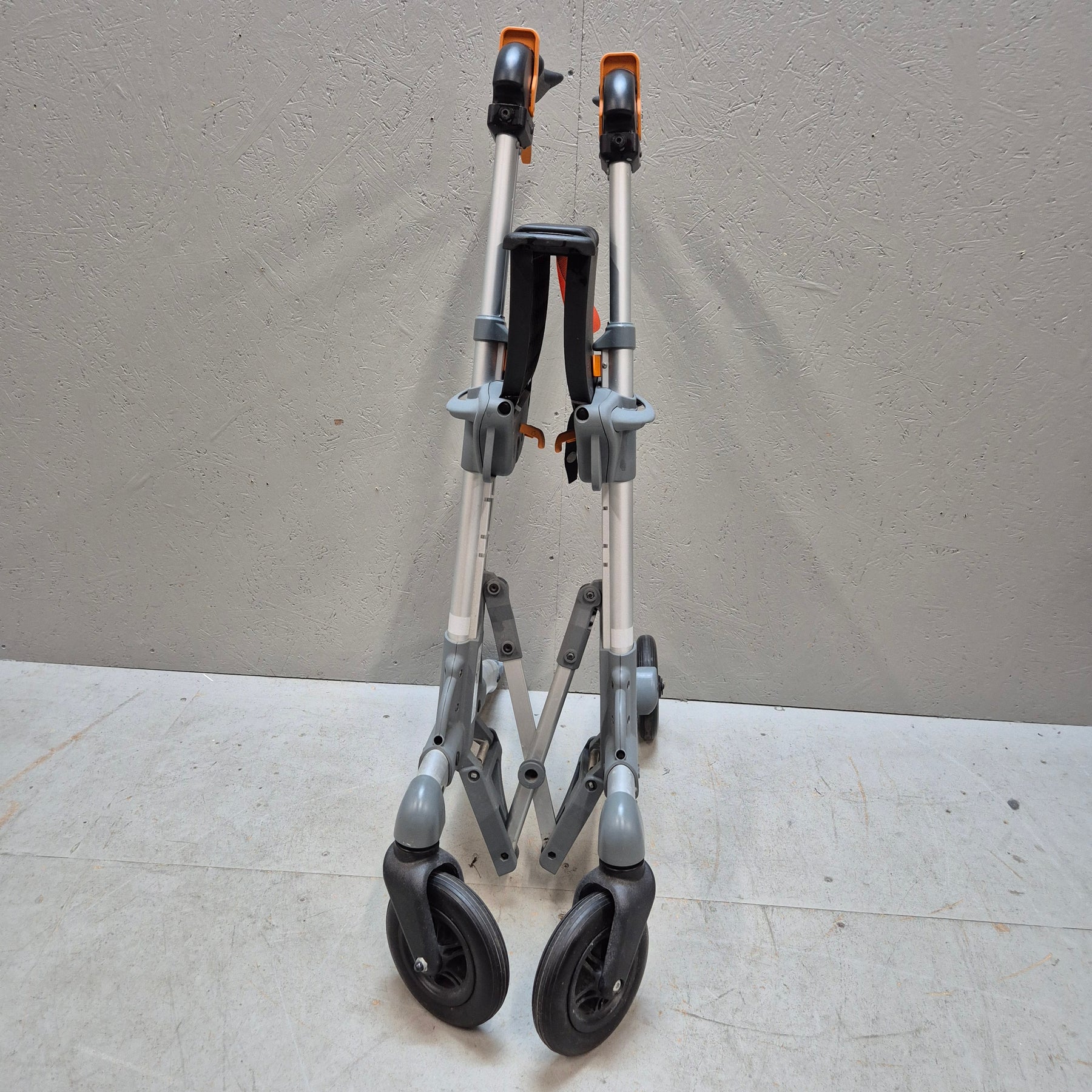 Denna moderna gångstol är designad för att ge stöd och stabilitet för personer som behöver extra hjälp vid promenader. Med dess lättmanövrerade hjul och robusta konstruktion är den idealisk för både inomhus- och utomhusbruk. Funktioner som justerbar höjd och ihopfällbar design gör den både praktisk och lätt att förvara. Gångstolen är begagnad men i mycket gott skick, med minimala bruksspår.