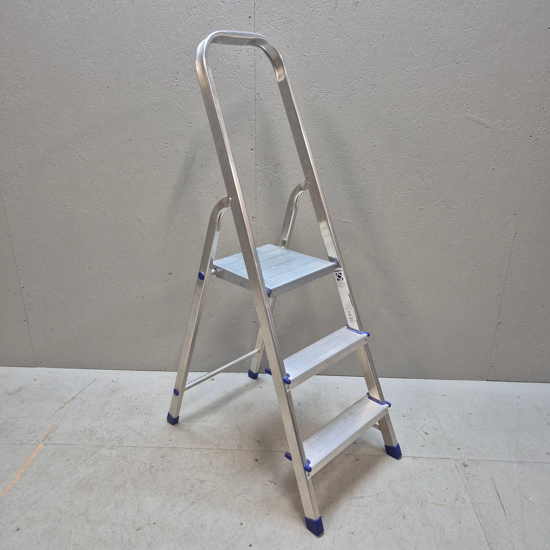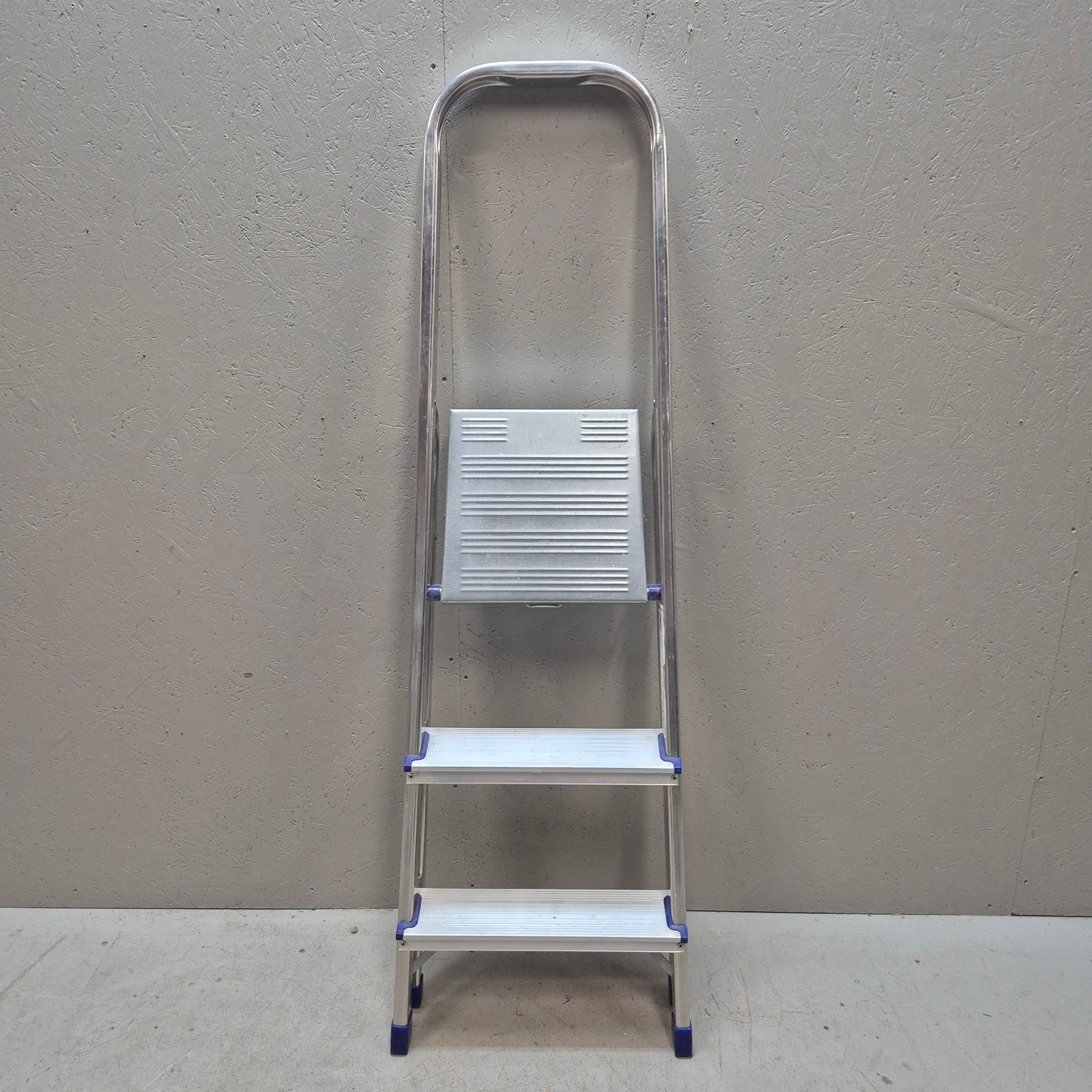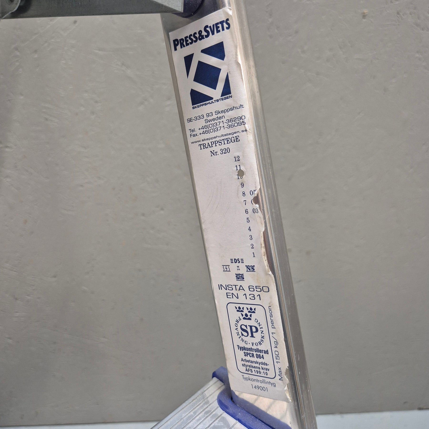 Denna stege är tillverkad av högkvalitativ aluminium vilket gör den både lätt och hållbart. Med sin kompakta design är den idealisk för både inomhus- och utomhusbruk, perfekt för att nå de där svåråtkomliga platserna. Stabiliteten förstärks av de halkfria stegpinnarna och fotplattorna. Begagnad men fortfarande i gott skick, denna stege förenklar ditt arbete och säkerställer din säkerhet vid användning.