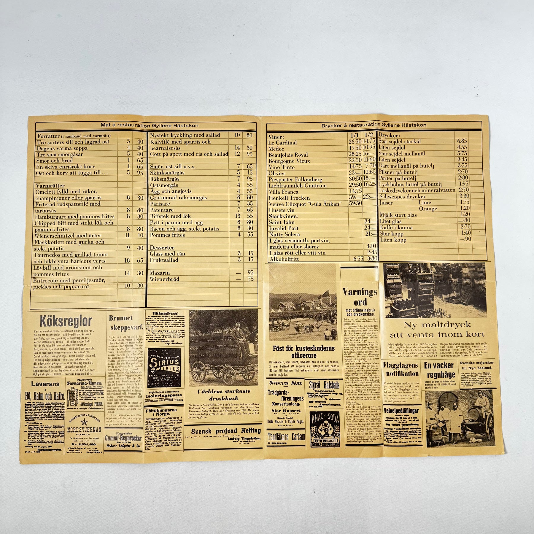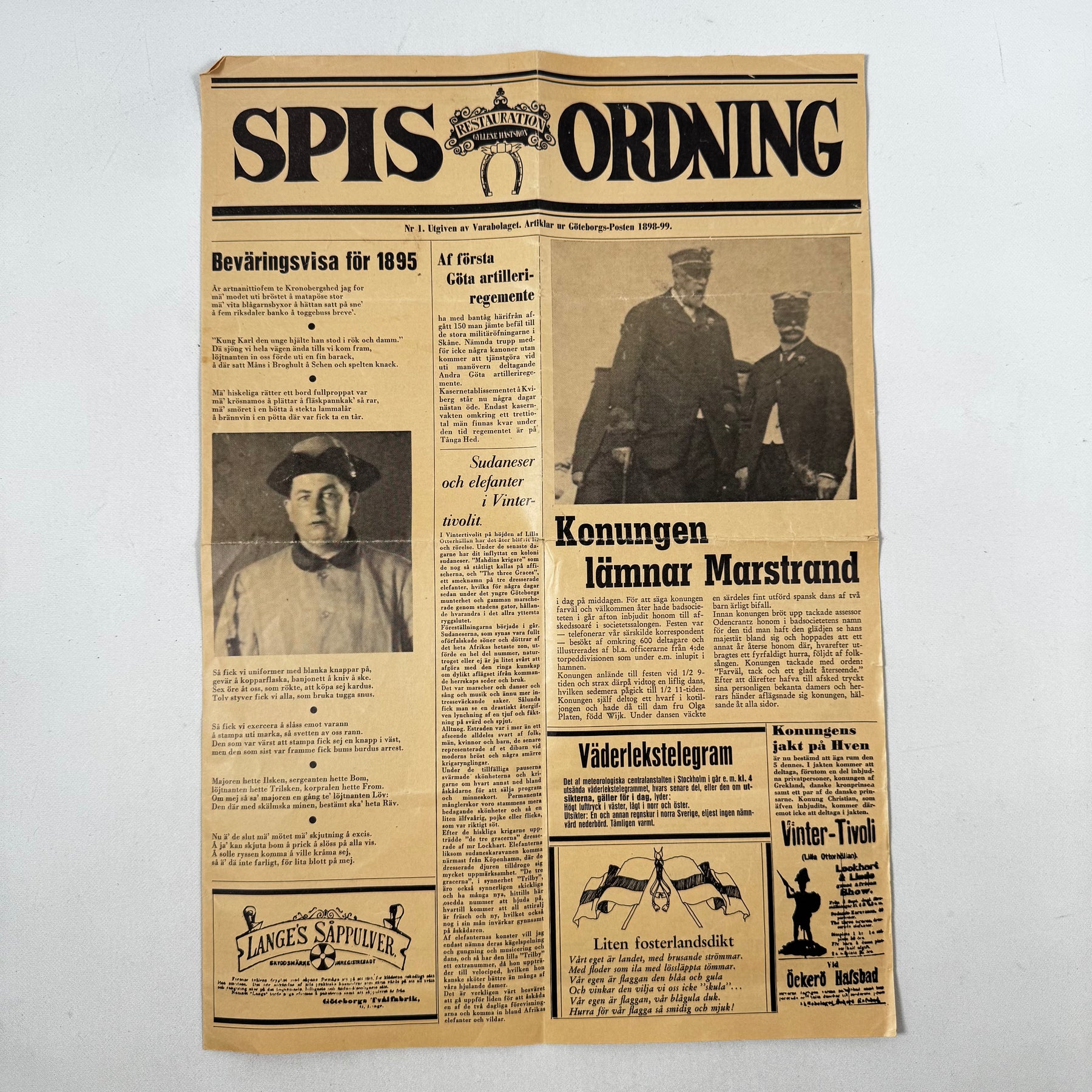 Historisk tidning 1898 Spis Ordning retro