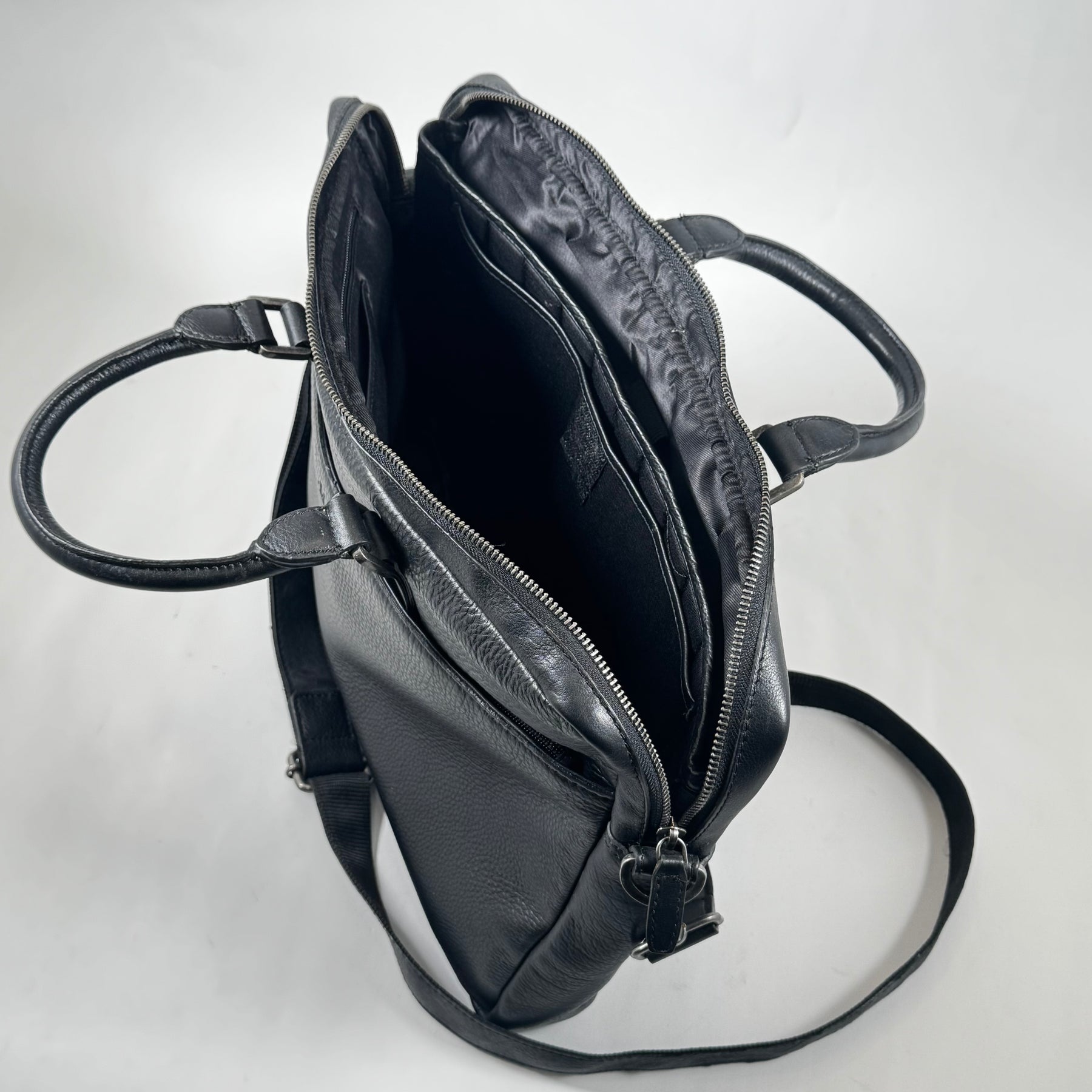 Denna handväska är idealisk för dagligt bruk med dess slitstarka och stilsäkra svarta läderdesign. Väskan från MCO kombinerar funktionalitet med elegans, utrustad med både handtag och en avtagbar axelrem för mångsidigt bruk. Det rymliga huvudfacket och flera mindre fickor gör det enkelt att organisera dina saker. Begagnad men i mycket gott skick, presenterar den sig som ett utmärkt tillägg till din garderob.3. Produktspecifikationer