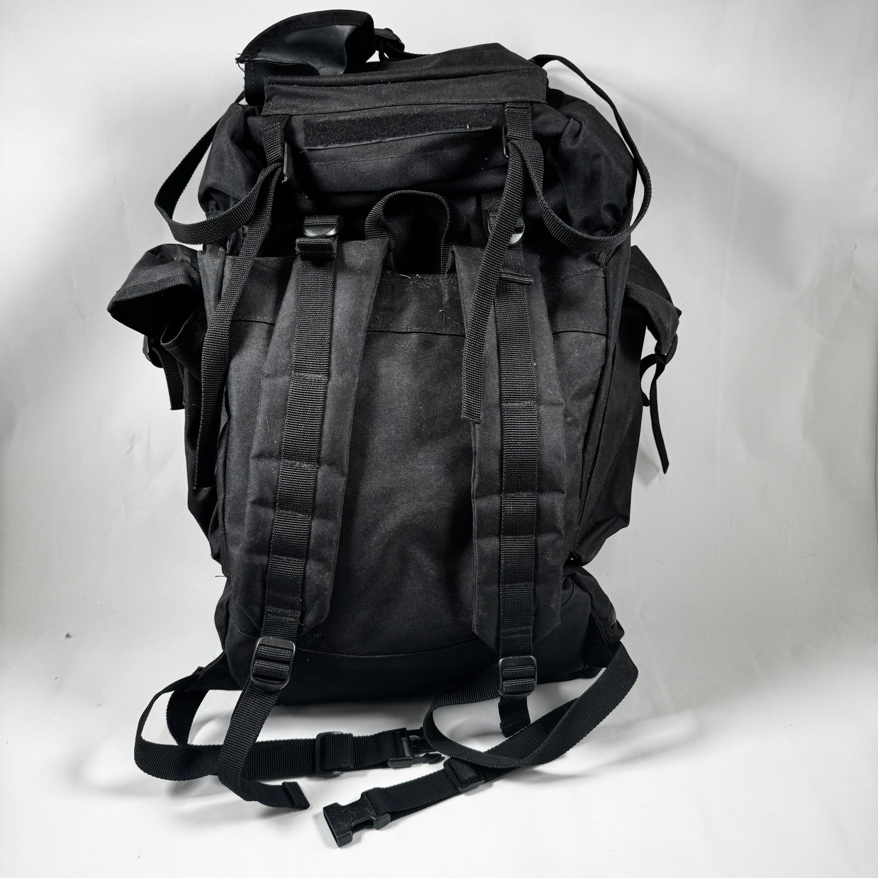 Denna svarta ryggsäck är idealisk för både stadsupptäckter och längre utflykter. Tillverkad av slitstarkt material med flera justerbara remmar och fack som gör packningen överskådlig och lättillgänglig. Dess bekväma axelremmar och vaderade bakpanel försäkrar komfort även under längre perioder av användning. Varan är begagnad men i mycket gott skick, vilket gör den till ett utmärkt köp för den miljömedvetne.Produktspecifikationer