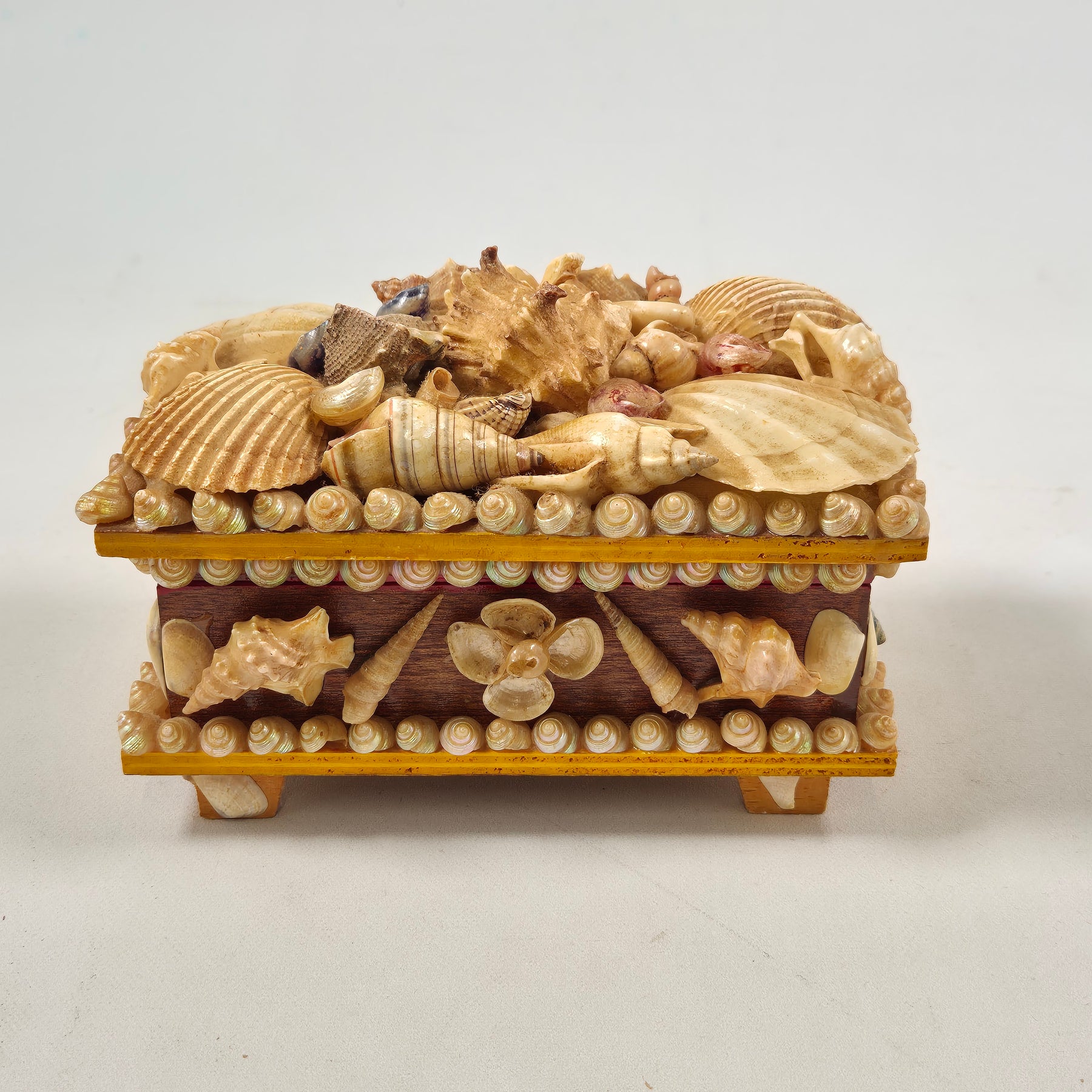 Upptäck denna unika och charmiga smyckeskrin dekorerad med äkta snäckskal.Produktbeskrivning