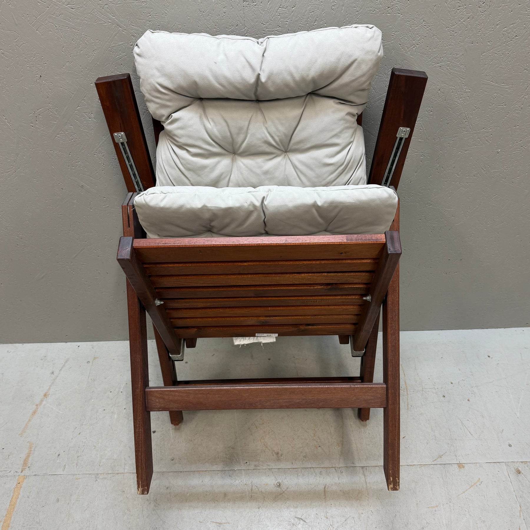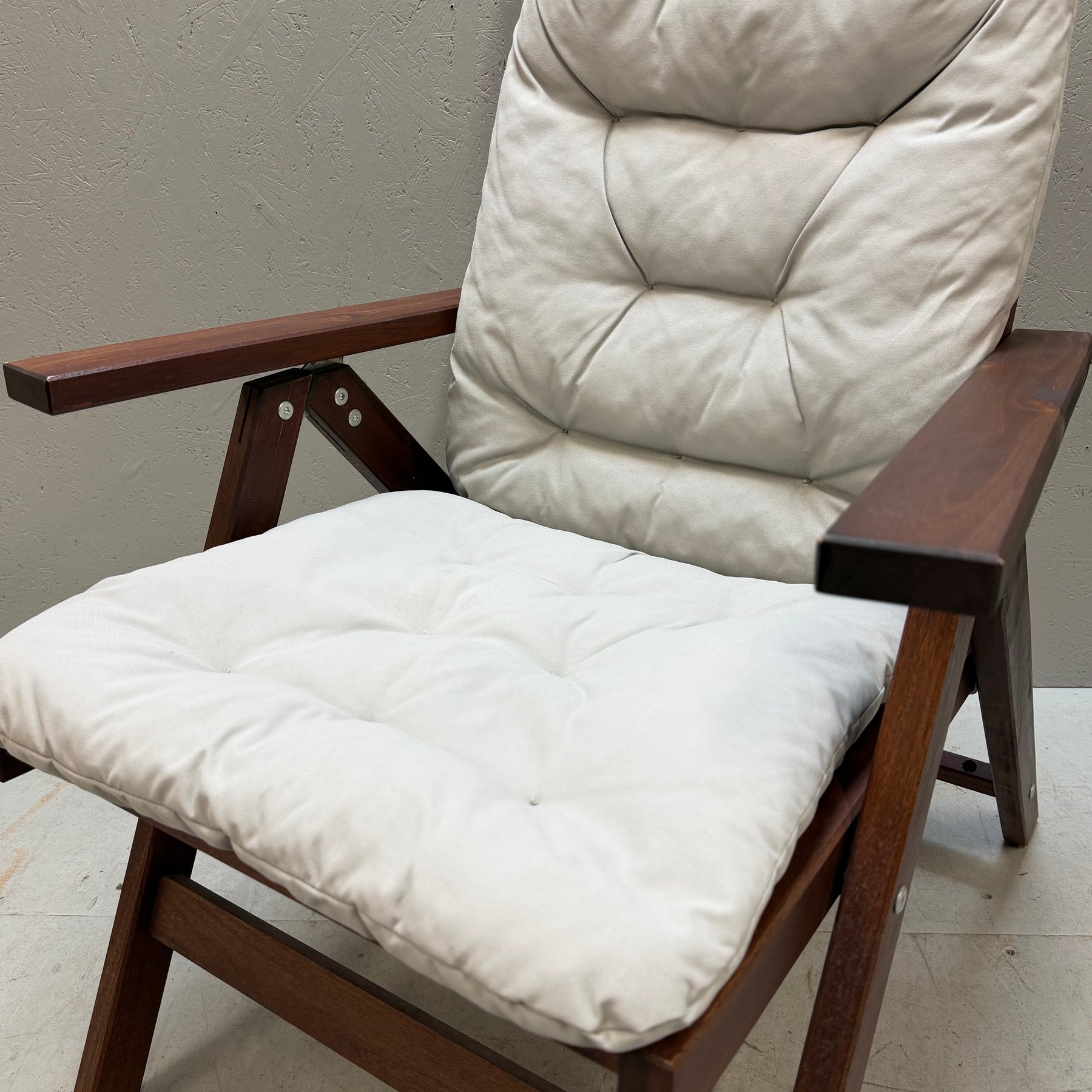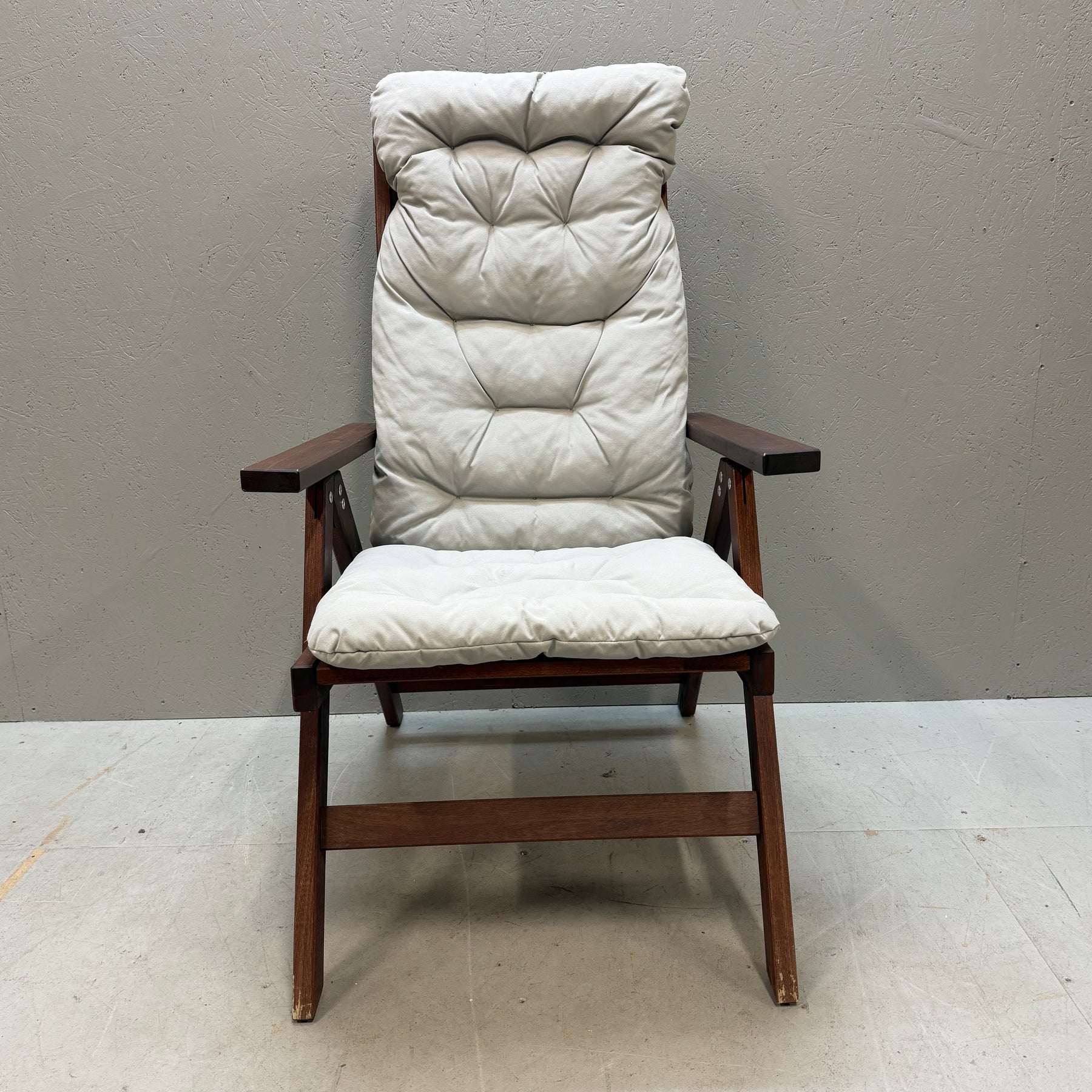 Denna solstol är inte bara en möbel, utan en stilfull och praktisk tillägg till ditt uterum eller trädgård. Med sitt robusta utförande i mörkt trä och bekväma, tjocka vita dynor erbjuder den optimal komfort. Perfekt för avkopplande dagar i solen! Solstolen är begagnad men mycket välvårdad och håller hög kvalitet.Produktspecifikationer