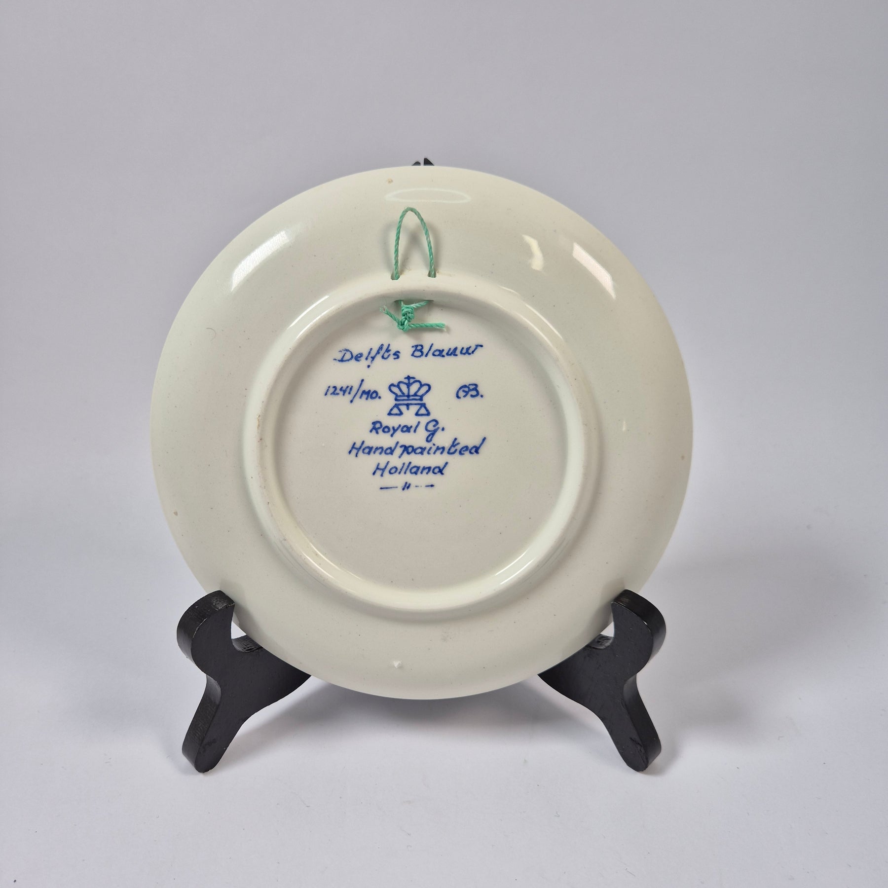 Dekorativ keramiktallrik med blått landskapsmotiv på vit botten, typisk för nederländskt Delft-porslin. Märkt Delft’s Blauw, Royal G, Handpainted Holland på baksidan och försedd med upphängningsögla, redo att hängas direkt på väggen. Perfekt för dig som älskar tidlös keramik, blåvit inredning eller vill skapa en personlig tavelvägg. Begagnad men i mycket gott skick med normal, lätt ålderspatina.3. Produktspecifikationer
