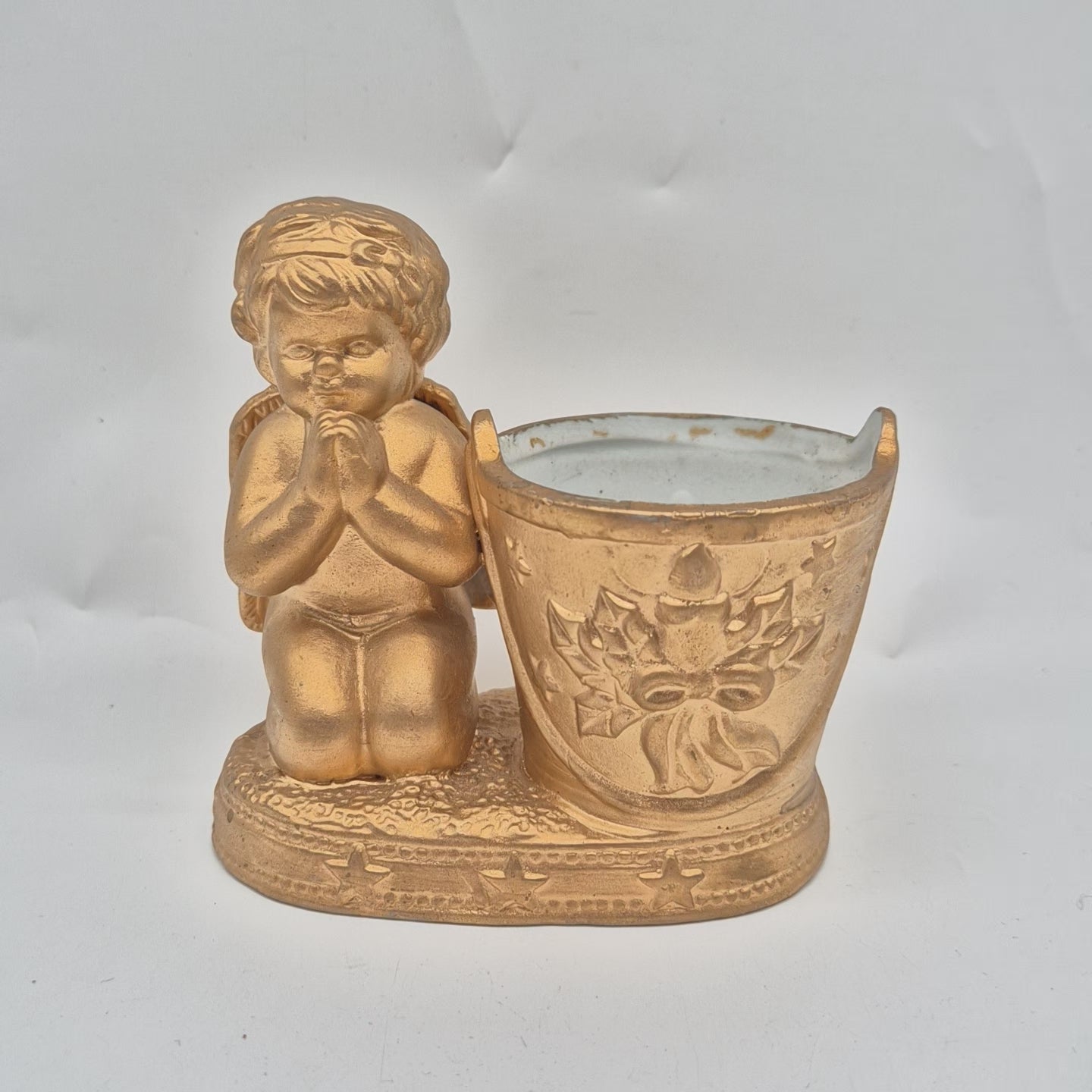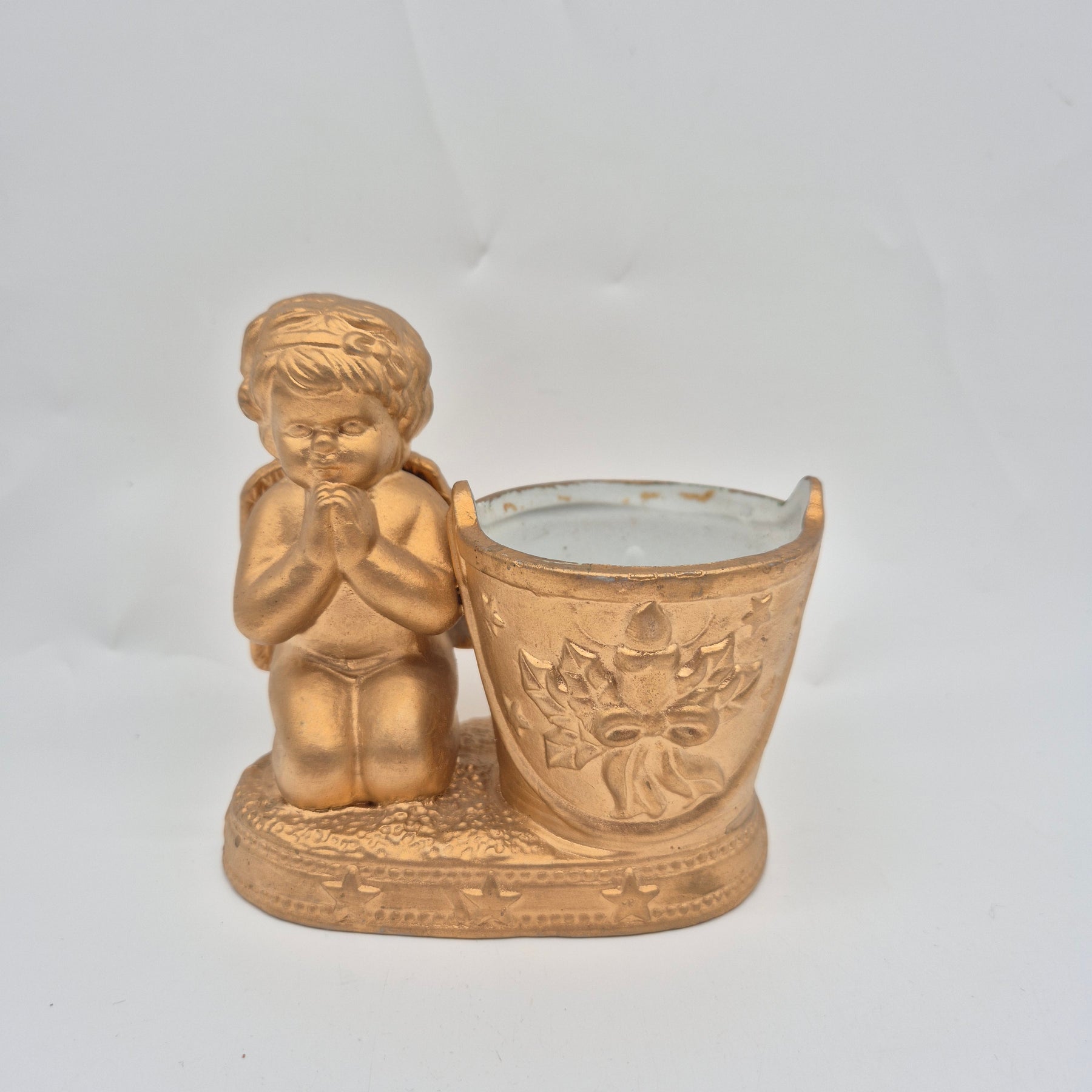 • Denna änglakruka är inte bara en praktisk föremål men också en utsökt dekoration. Gjord i lera och detaljrikt utformad med en ängel som lutar sig mot krukan, vilket adderar en nostalgisk touch till vilket rum som helst.