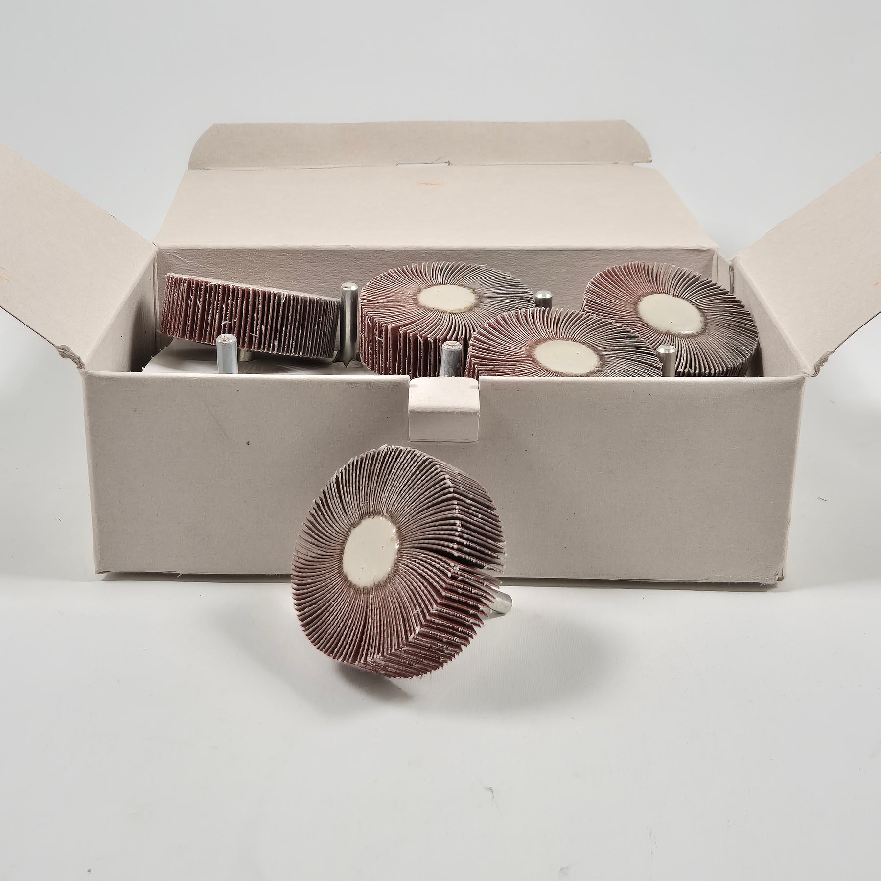 Dessa högkvalitativa sliprondeller, kända som Fächerschleifer, är idealiska för precisionsslipning och finbearbetning av metaller och andra material. Tillverkade i Tyskland, förkroppsligar dessa verktyg pålitlighet och hållbarhet. Med en kompakt och robust design, passar de utmärkt för både professionella användare och händiga hemmafixare. Produkten är begagnad men fortfarande i mycket gott skick och levereras i originalförpackningen vilket säkerställer ytterligare skydd och autenticitet.Produktspecifikationer