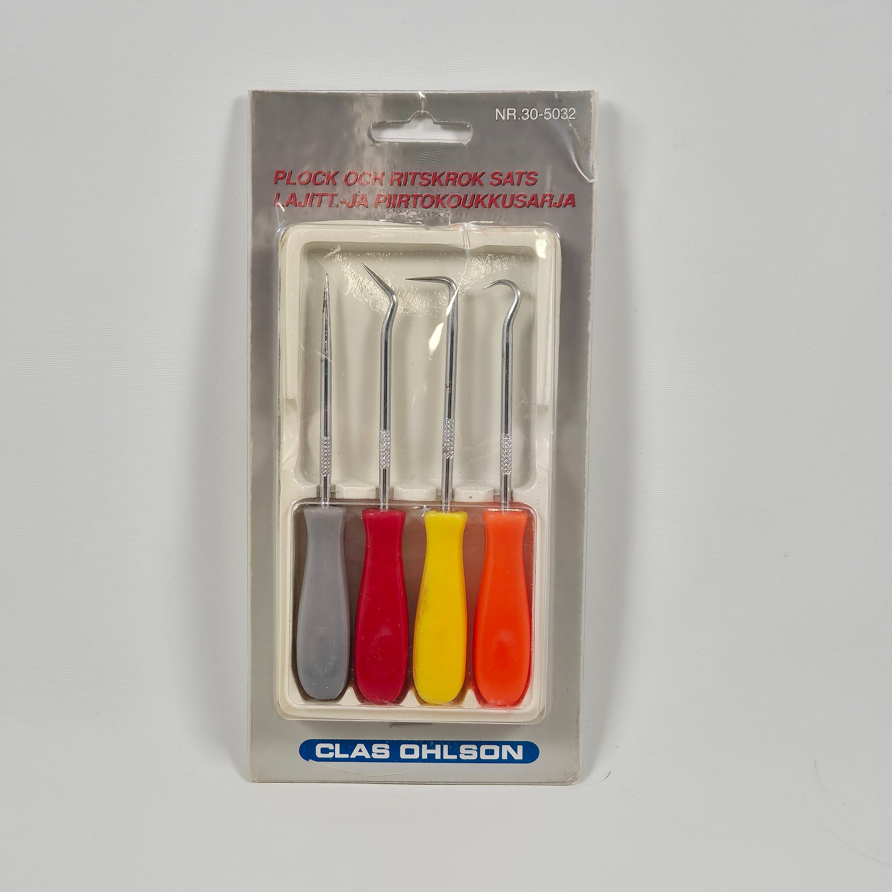 Denna sats innehåller fyra verktyg med ergonomiska handtag i färgglada nyanser av grått, rött, gult och orange, vilket gör dem lätta att skilja från varandra. Verktygen är utformade för precision och är perfekta för att plocka, rita eller justera små detaljer i elektronik, hantverk eller modellbygge. Satsen är oanvänd i sitt originalförpackning, vilket gör den till ett utmärkt köp för både vardagsbruk och samlare.Produktspecifikationer