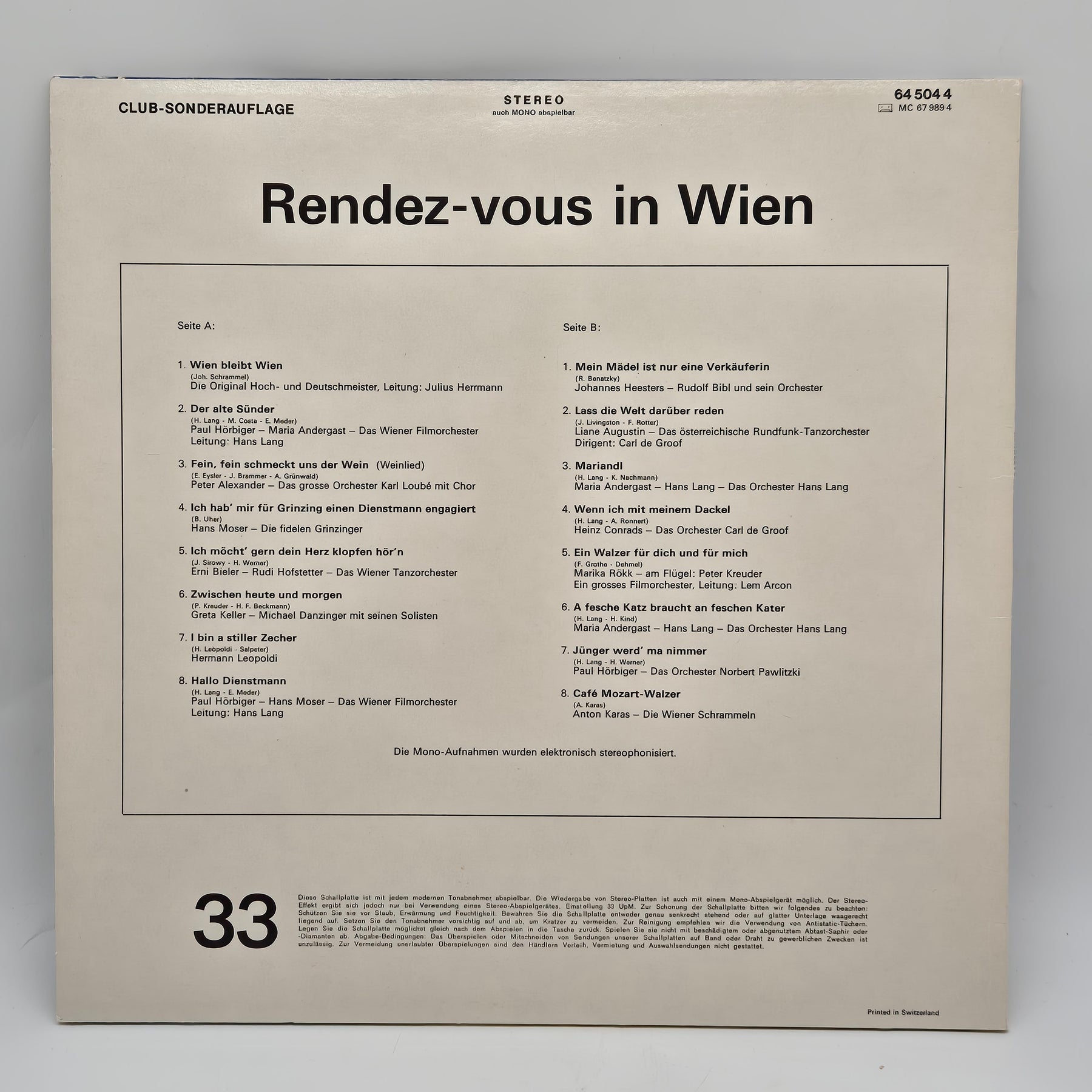 Upptäck nostalgin med "Rendez-vous in Wien" - en klassisk vinylskiva för samlare och musikälskare.Produktbeskrivning