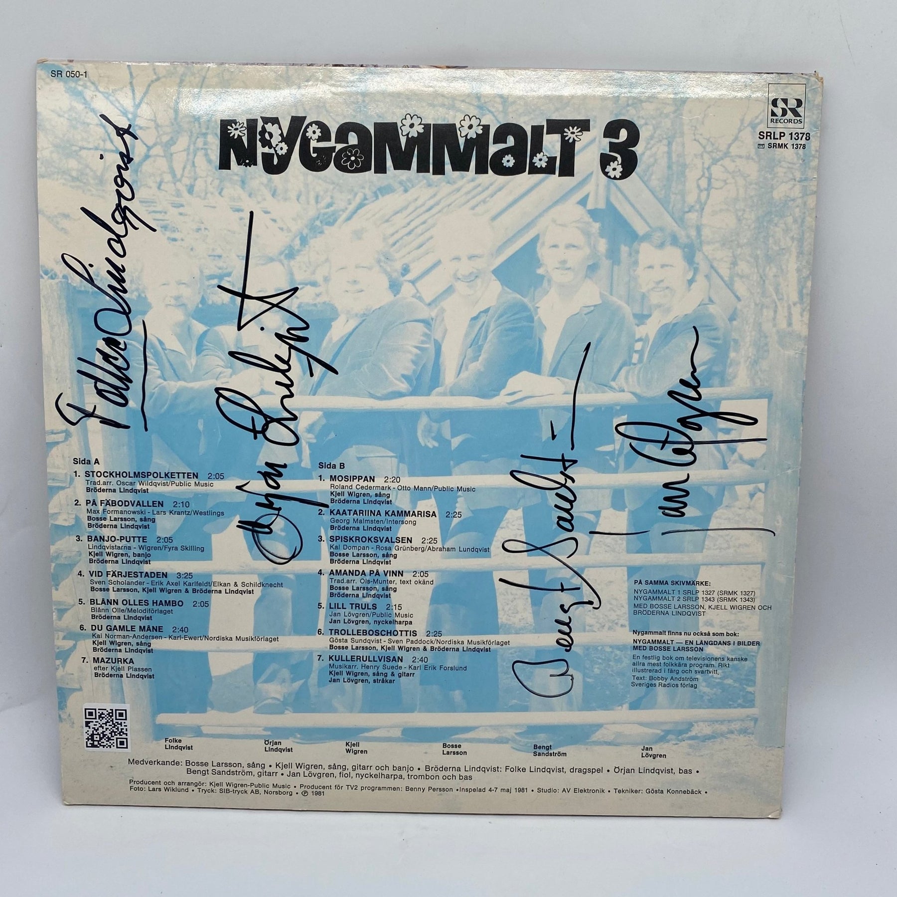 Nygammalt 3 är en LP-skiva med svensk folkmusik av Bosse Larsson och Kjell Wigren. Den erbjuder en blandning av traditionella och samtida låtar. Skickan är begagnad men i gott skick, med tydliga tecken på användning på omslaget men inga större skador på vinylen.