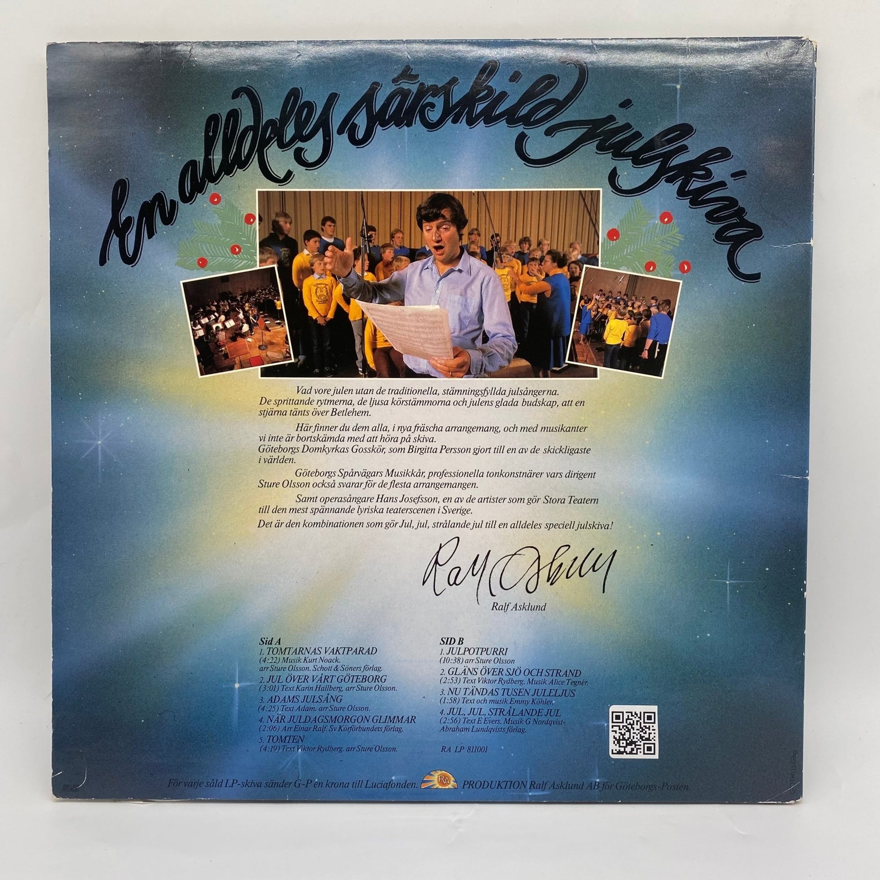 Ett traditionellt julalbum framfört av Göteborgs Domkyrkas Gosskör och dirigenten Birgitta Persson. Denna vinylskiva innehåller klassiska julvisor och är perfekt för att återuppleva gammeldags julstämning. Skicket är begagnat men gott.