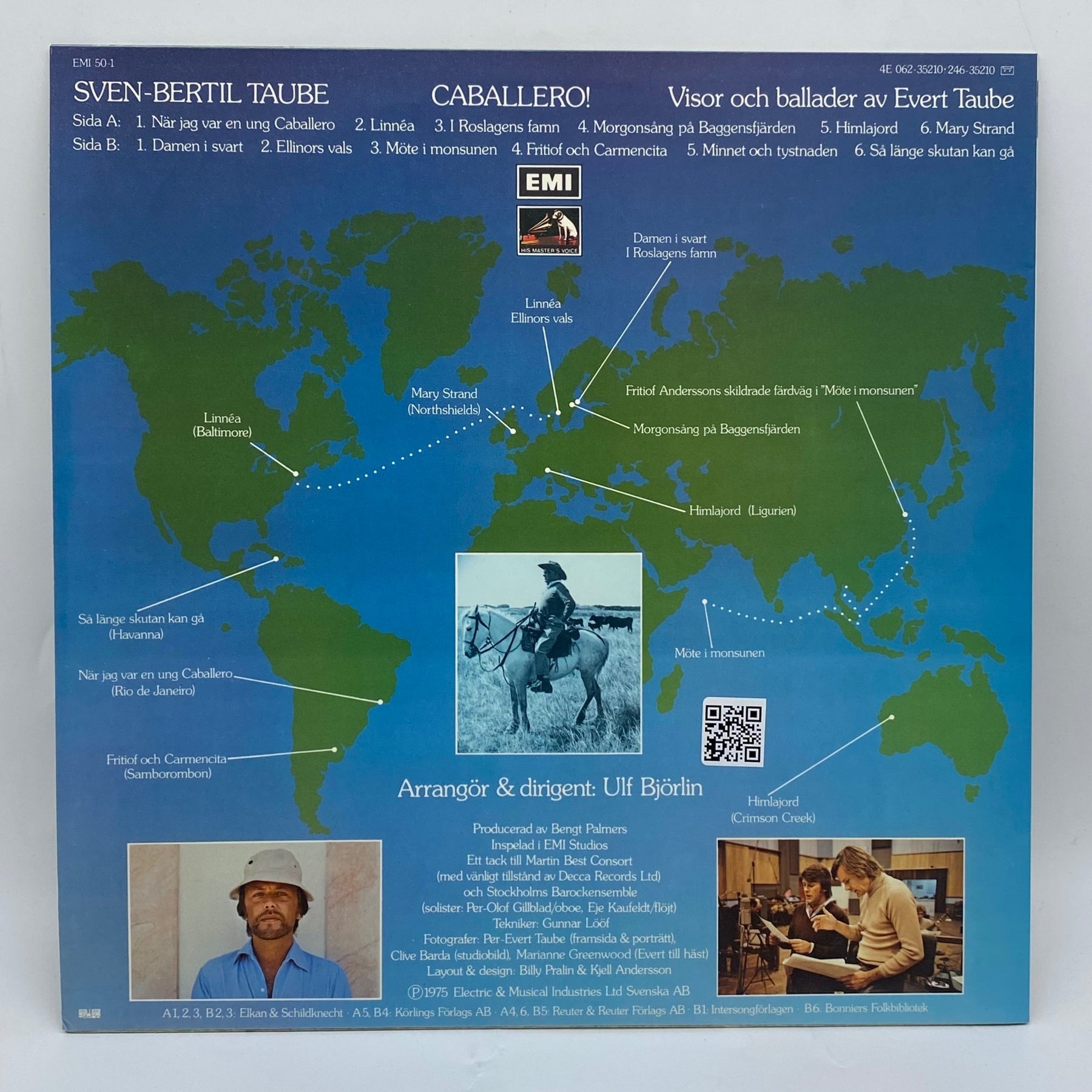 En vinylskiva med titeln "Caballero!" av Sven-Bertil Taube som erbjuder ett urval av visor och ballader skrivna av Evert Taube. Skivan är begagnad men i gott skick och presenterar nostalgiska melodier som är perfekta för samlare eller fans av svensk folkmusik.