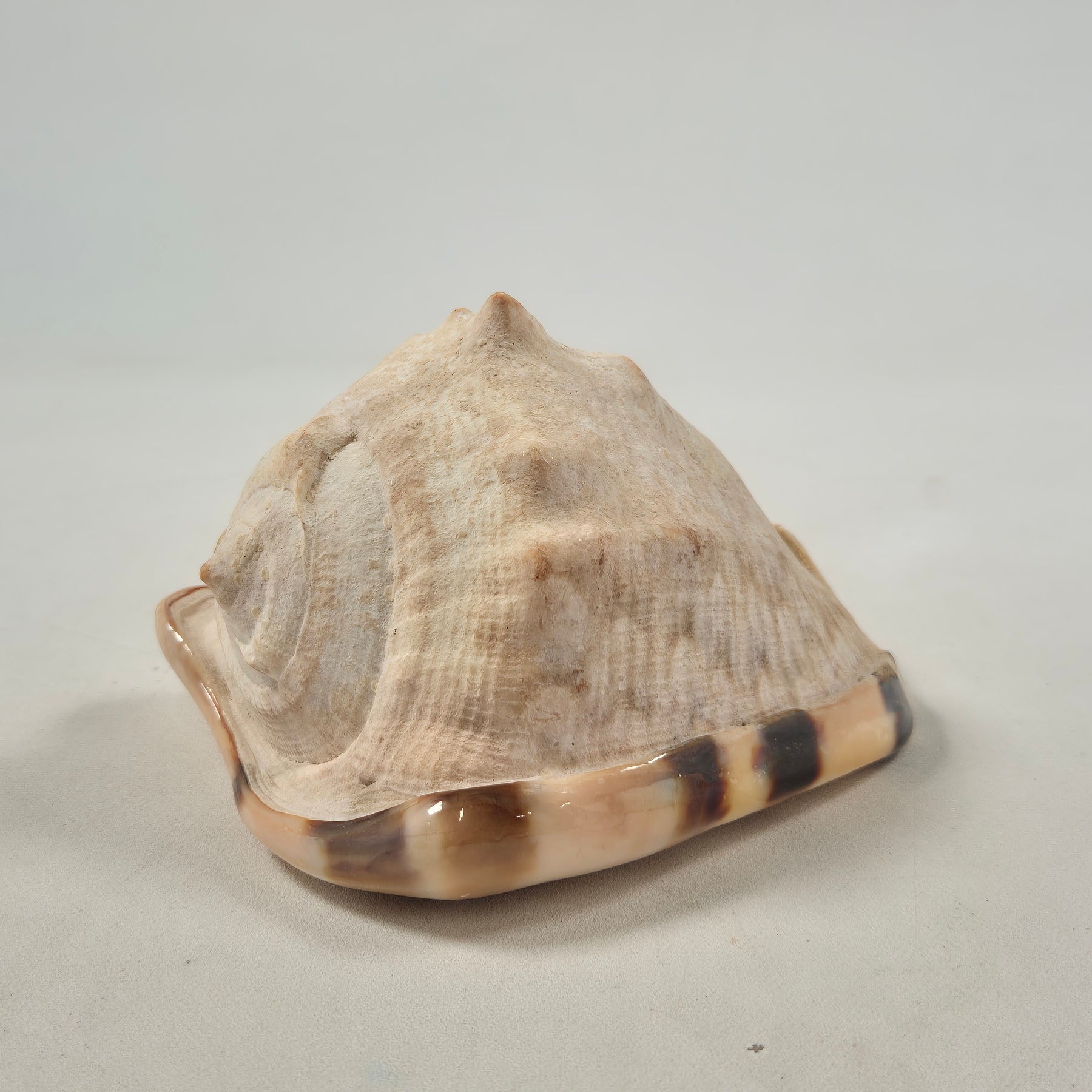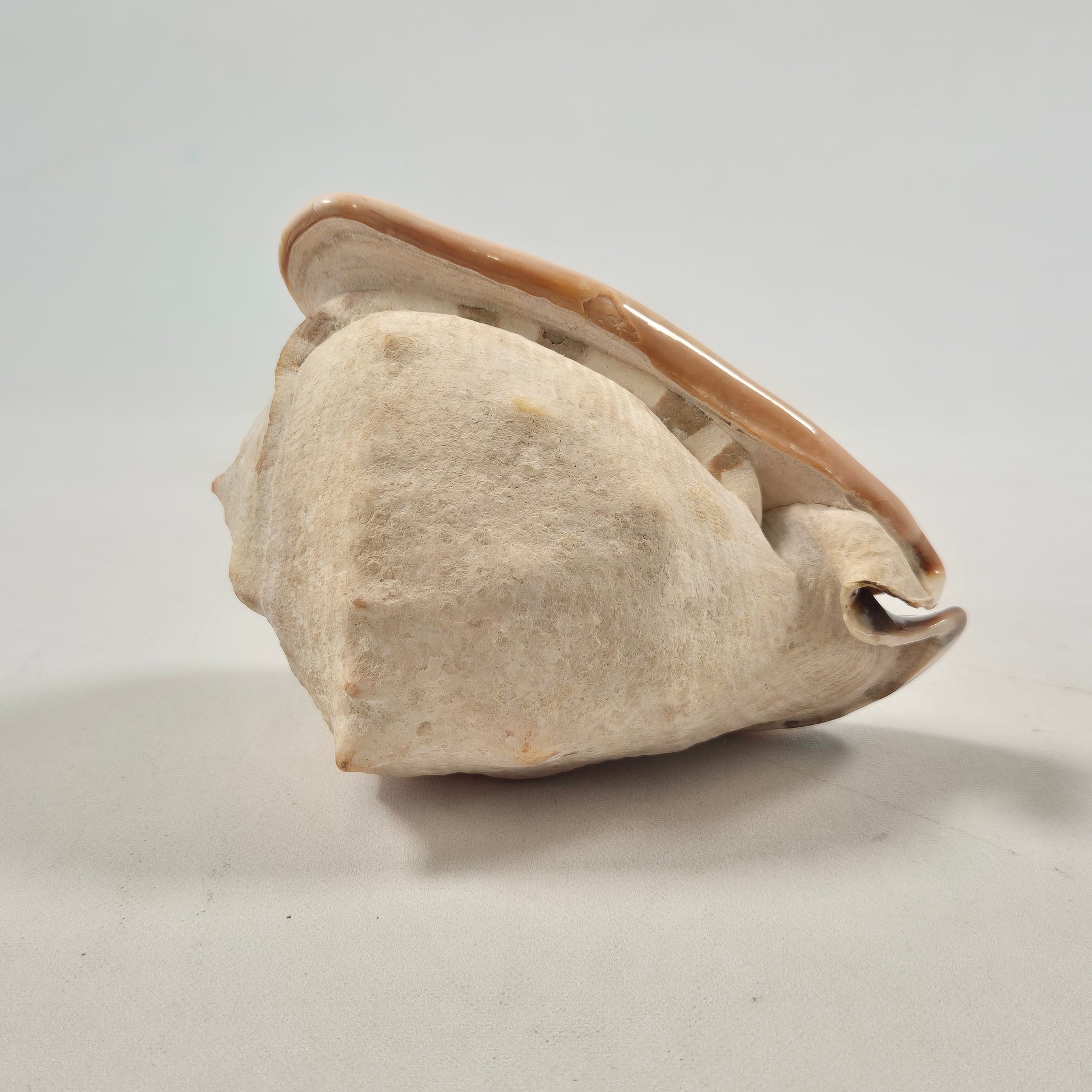 Denna vackra skulpturala snäckskal är inte bara en fascinerande dekorationsartikel utan också ett konstverk i sig. Med sina naturliga och mjuka färger kommer den att tillföra en känsla av havet till vilket rum som helst. Snäckskalens detaljerade och realistiska formgivning gör den till ett perfekt objekt för samlare eller som en exklusiv gåva. Skicket på snäckskal är begagnat men väl bevarat utan synliga tecken på slitage.