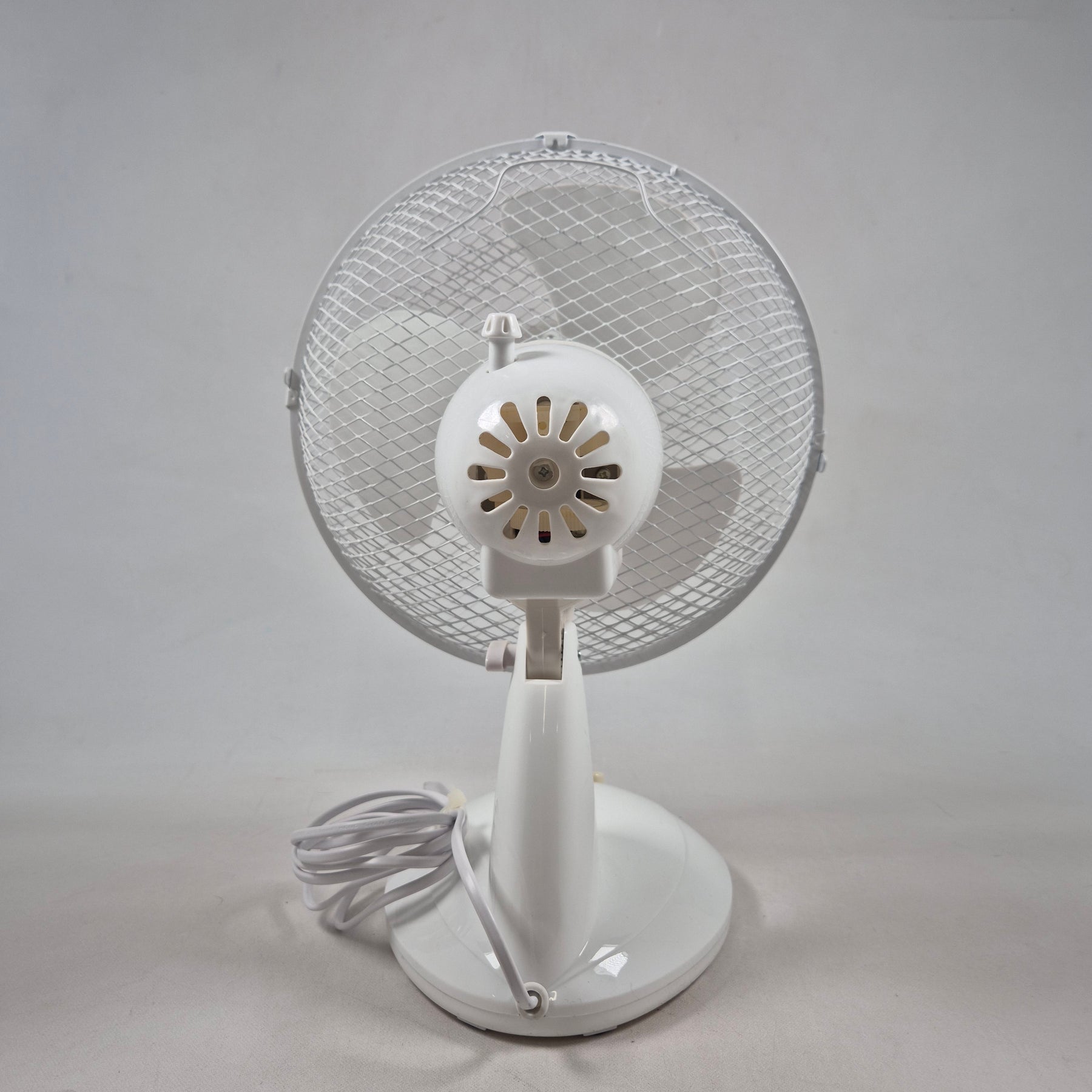 Clas Ohlson vit bordfläkt i plast