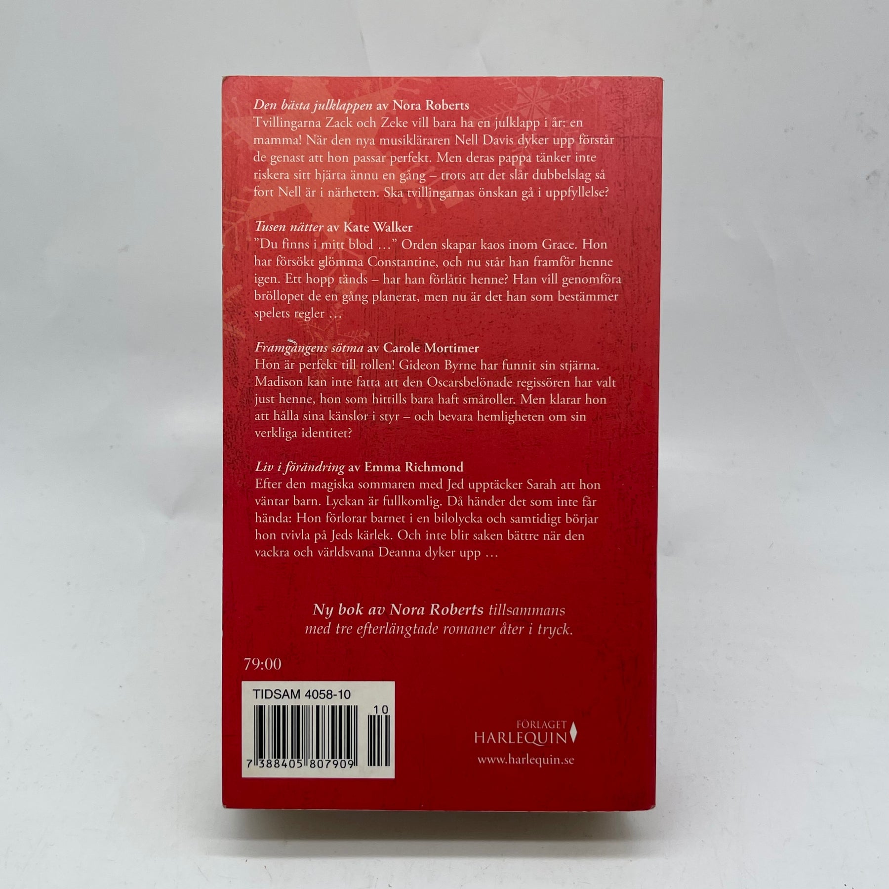 Denna bok erbjuder en unik samling av fyra gripande romaner som lovar att hålla läsaren fängslad från början till slut. Utöver Nora Roberts bidrar även författarna Kate Walker, Carole Mortimer och Emma Richmond med sina berättelser som varierar från djupa familjedrama till hänförande kärleksaffärer. Bokens skick är begagnat men mycket gott skick, en idealisk bok för årets kyliga månader.| Kategori | Bok |