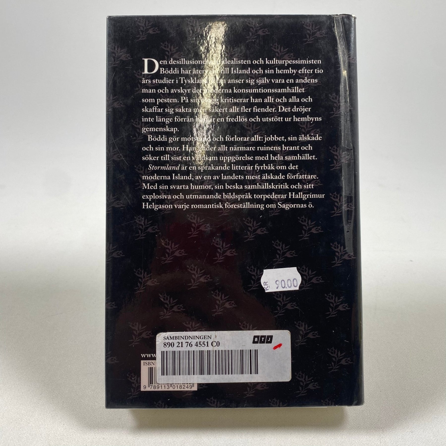 "Stormland" av Hallgrímur Helgason är en roman som utforskar samhällskritiska ämnen med svart humor. Boken är i gott skick och erbjuder en tankeväckande läsning.