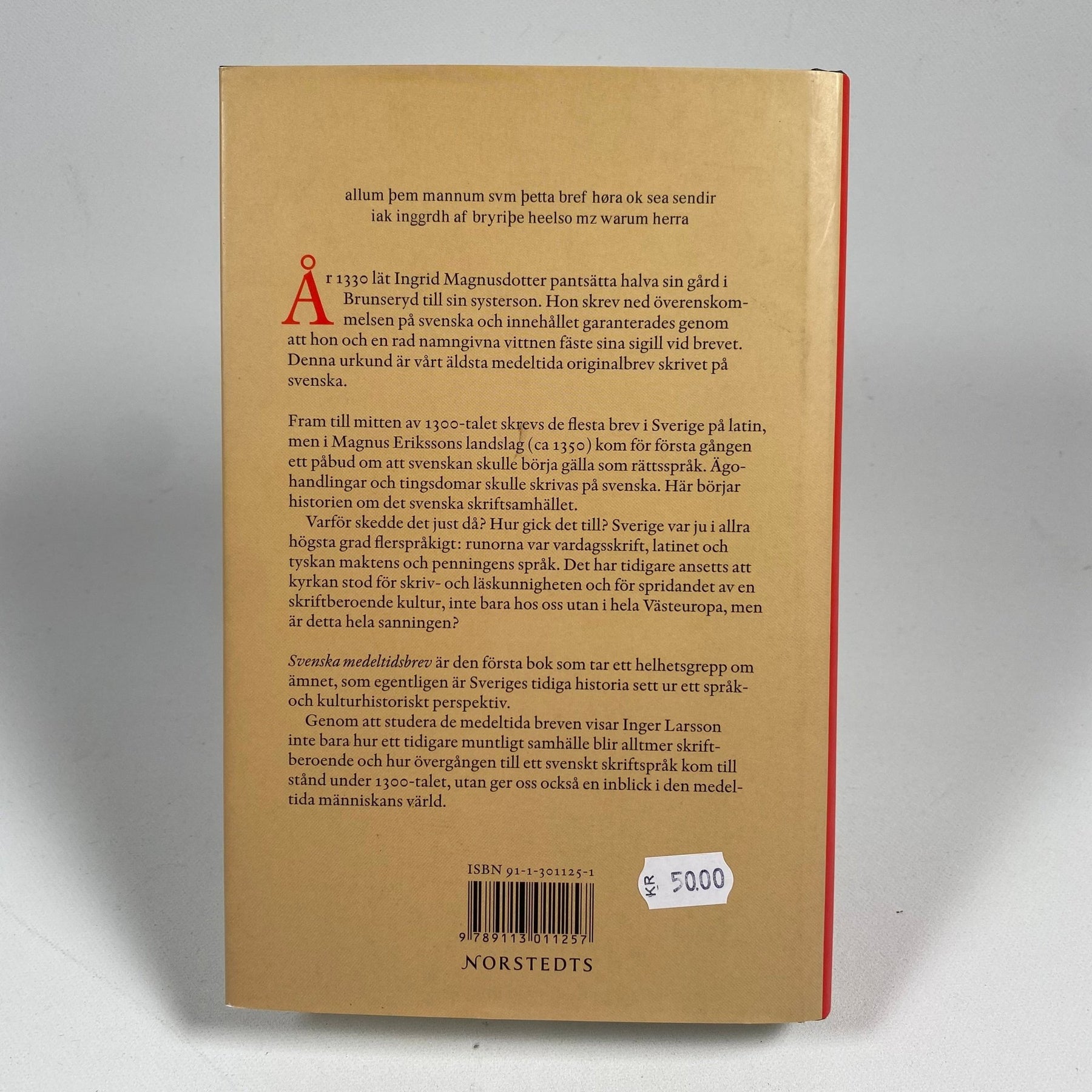 Boken "Svenska Medeltidsbrev" av Inger Larsson, behandlar framväxten av svenskt skriftspråk under medeltiden genom att studera äldre brev. Ett historiskt verk som även ger inblick i samhällsförändringar och skriftkulturen. Skick: begagnad, gott skick.