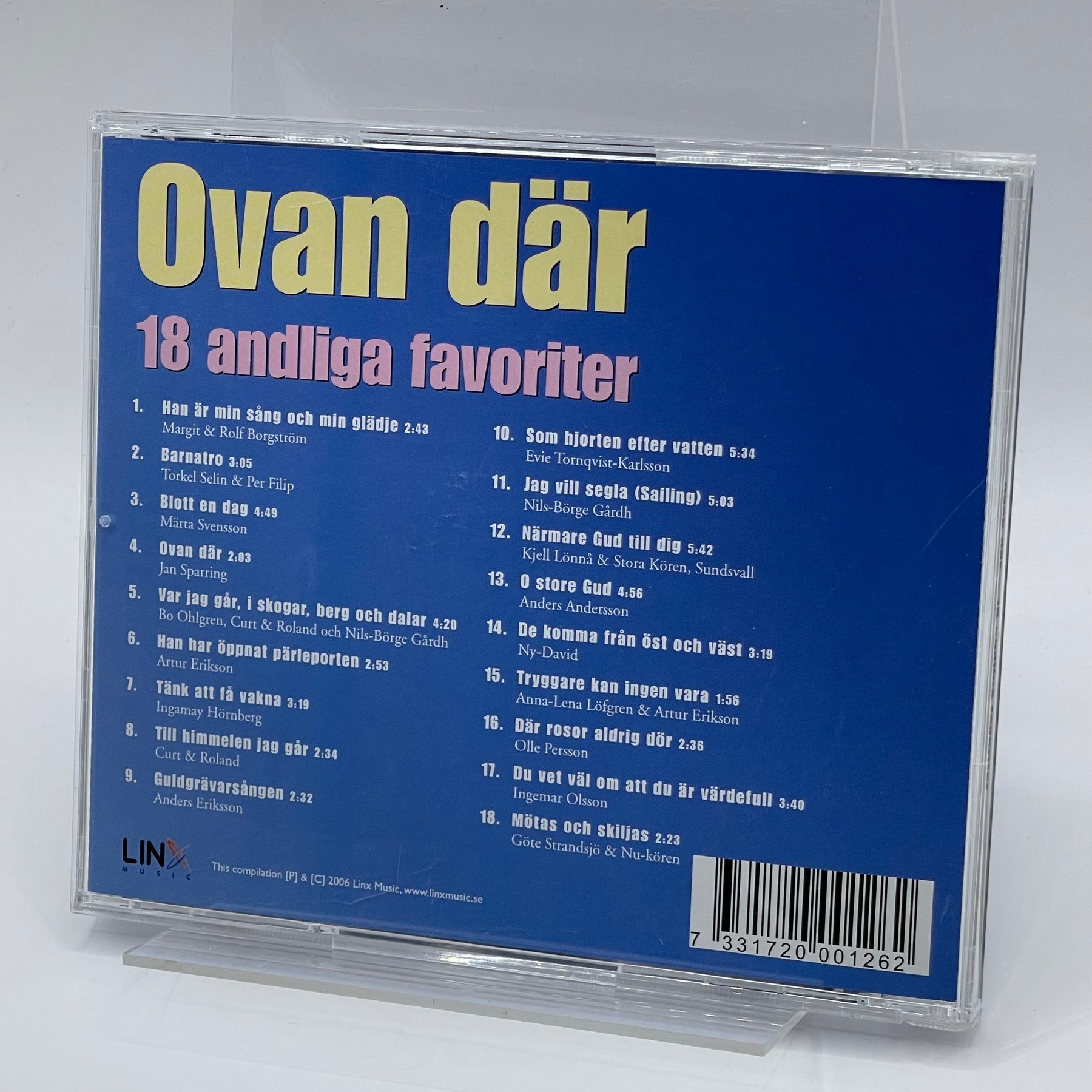 "Ovan där" är en CD som innehåller 18 andliga låtar framförda av respekterade svenska sångare såsom Jan Sparring, Artur Erikson och Anna-Lena Löfgren. Denna samling erbjuder en mångsidighet av klassiska och nyskapande andliga melodier, perfekt för lugna ögonblick eller spirituell meditation. Skivan är begagnad men i utmärkt skick utan synliga repor eller skador.